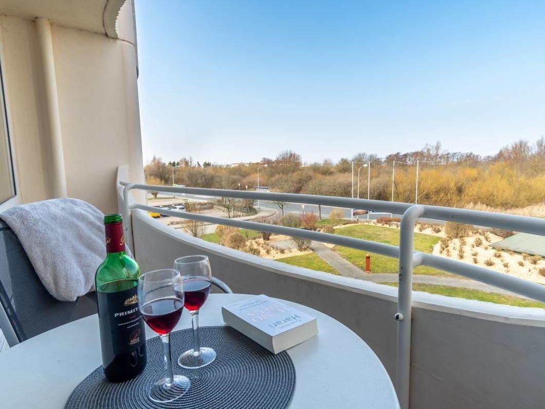 Es handelt sich um ein im Januar 2023 modernisiertes 2-Raum-Apartment mit Balkon in Richtung des Meeres (Meerblick wird eingeschränkt durch Bäume), Küchenzeile und WC mit Dusche und Föhn. Eine große Fensterfront sorgt für ein helles und gemütliches Ambiente. Entspannen können Sie auf einer gemütlichen Sitzgarnitur im Wohnbereich.