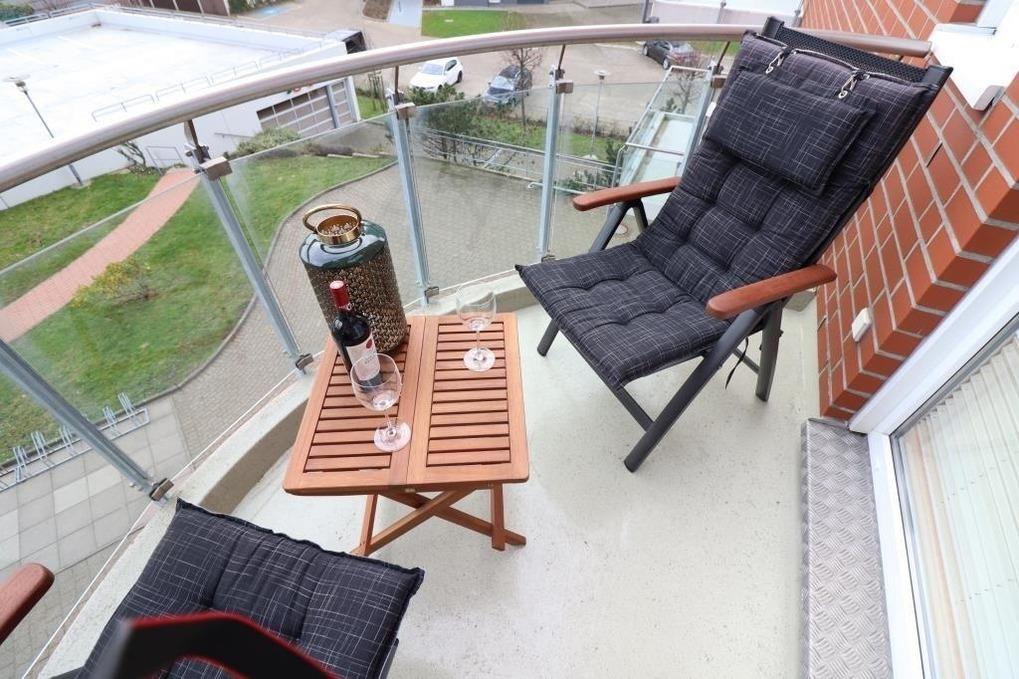 Strandnahe Ferienwohnung in Cuxhaven mit Balkon, kostenfreiem WLAN und Stellplatz für zwei Gäste.