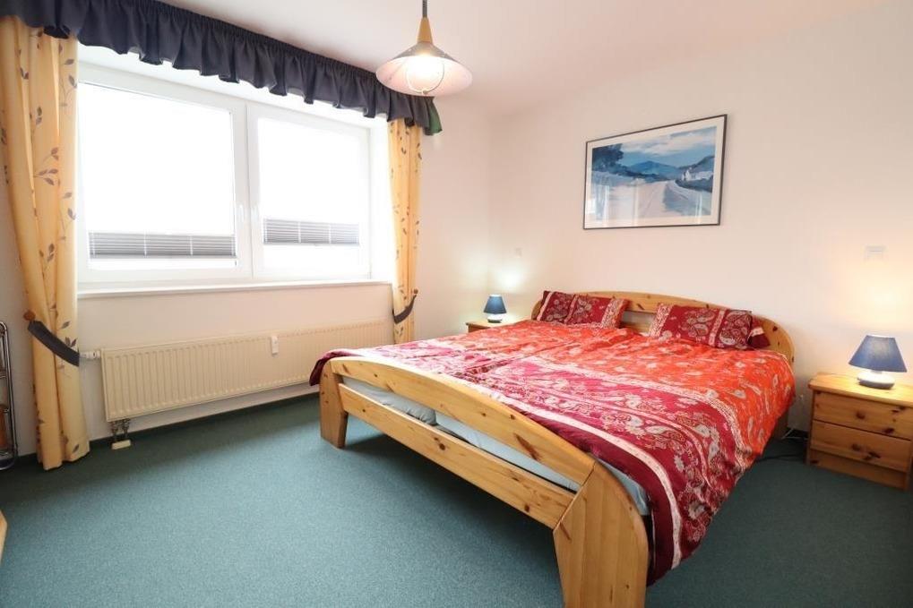 Gemütliche Ferienwohnung mit einem Schlafraum mit einem Doppelbett (davon 1 Bett mit verstellbarem Lattenrost), ein Wohnraum mit Küchenzeile mit Backofen, Mikrowelle und Kühlschrank, Bad / WC, TV