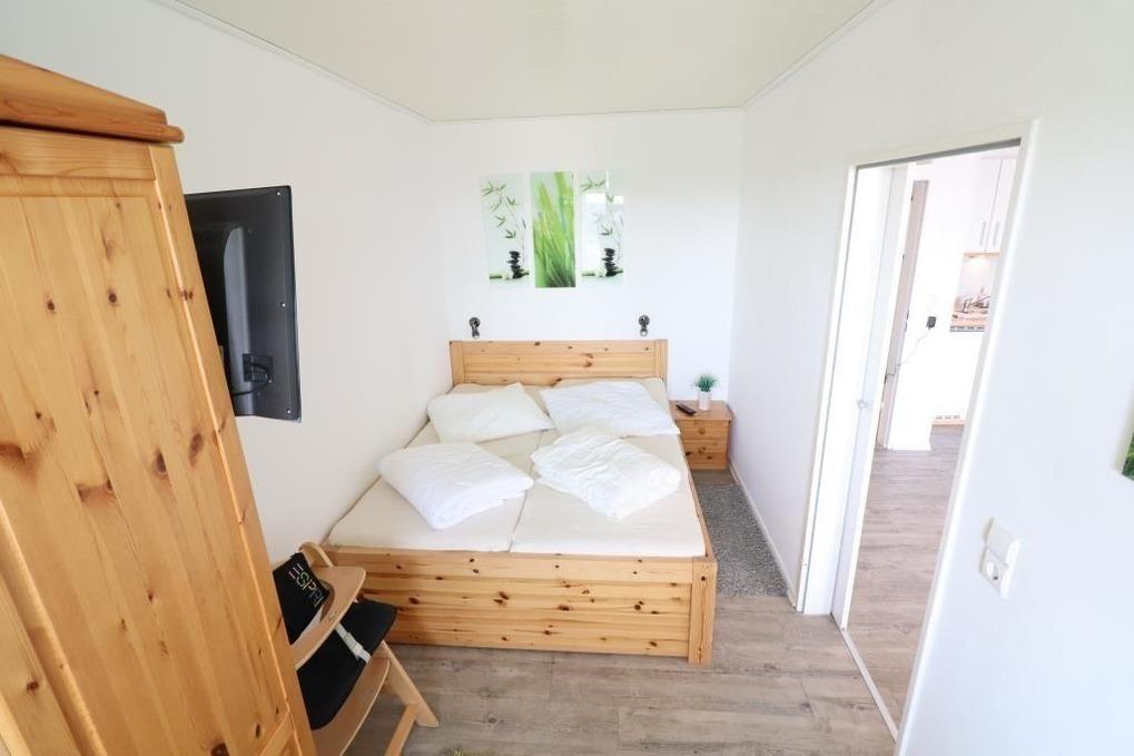 Helle, gemütliche Ferienwohnung mit vollverglastem Freisitz, von welchem aus sie die Fernsicht über die Umgebung genießen können. Ideal geeignet für einen Urlaub zu dritt. Kostenfreies WLAN und ein Stellplatz sind hier selbstverständlich!