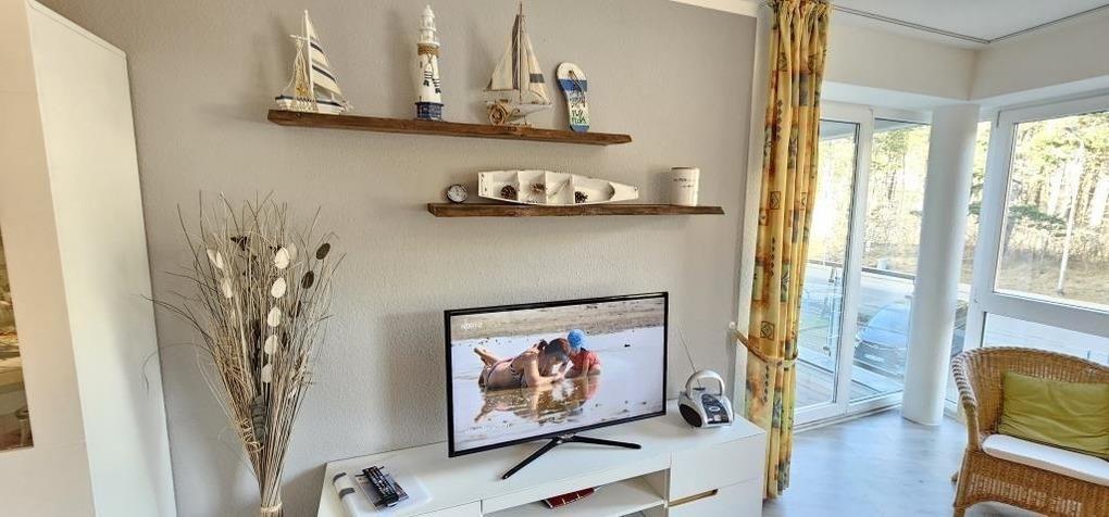 Gemütliche Ferienwohnung mit einem Schlafraum mit einem Doppelbett, einem Schlafraum mit zwei Einzelbetten, ein Wohnraum, Küchenzeile mit Geschirrspüler, Backofen und Kühlschrank, Dusche / WC, 2 x TV