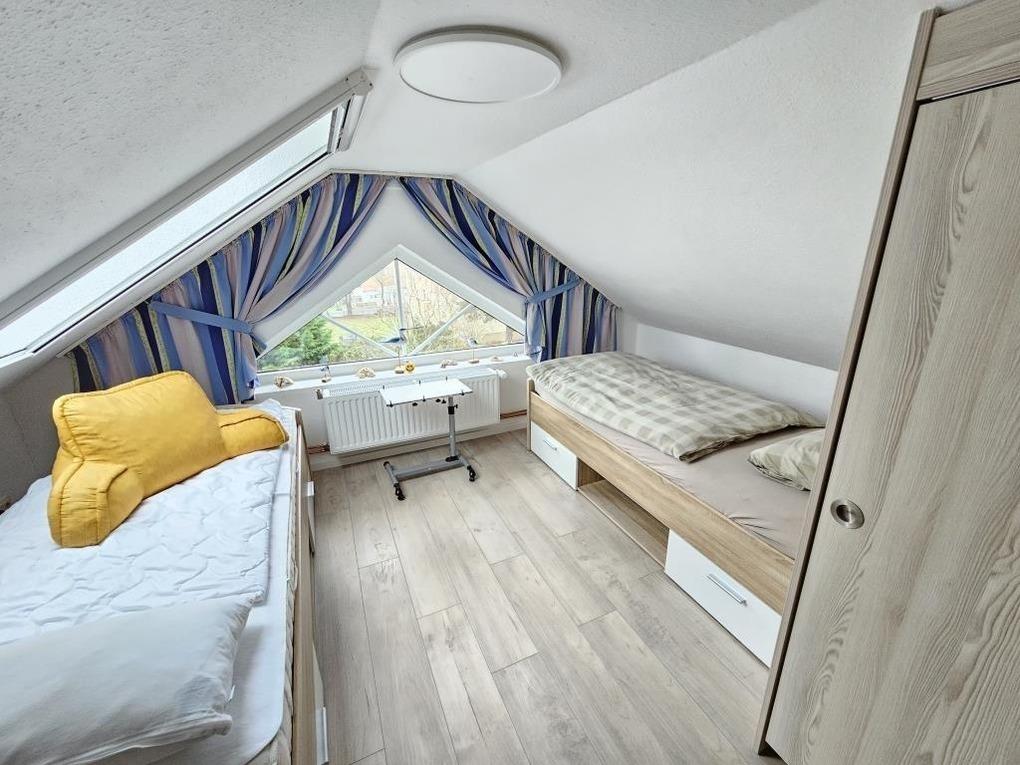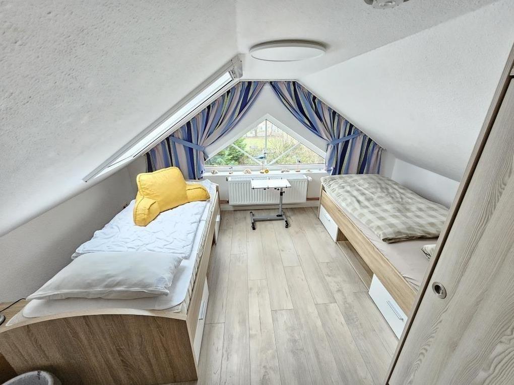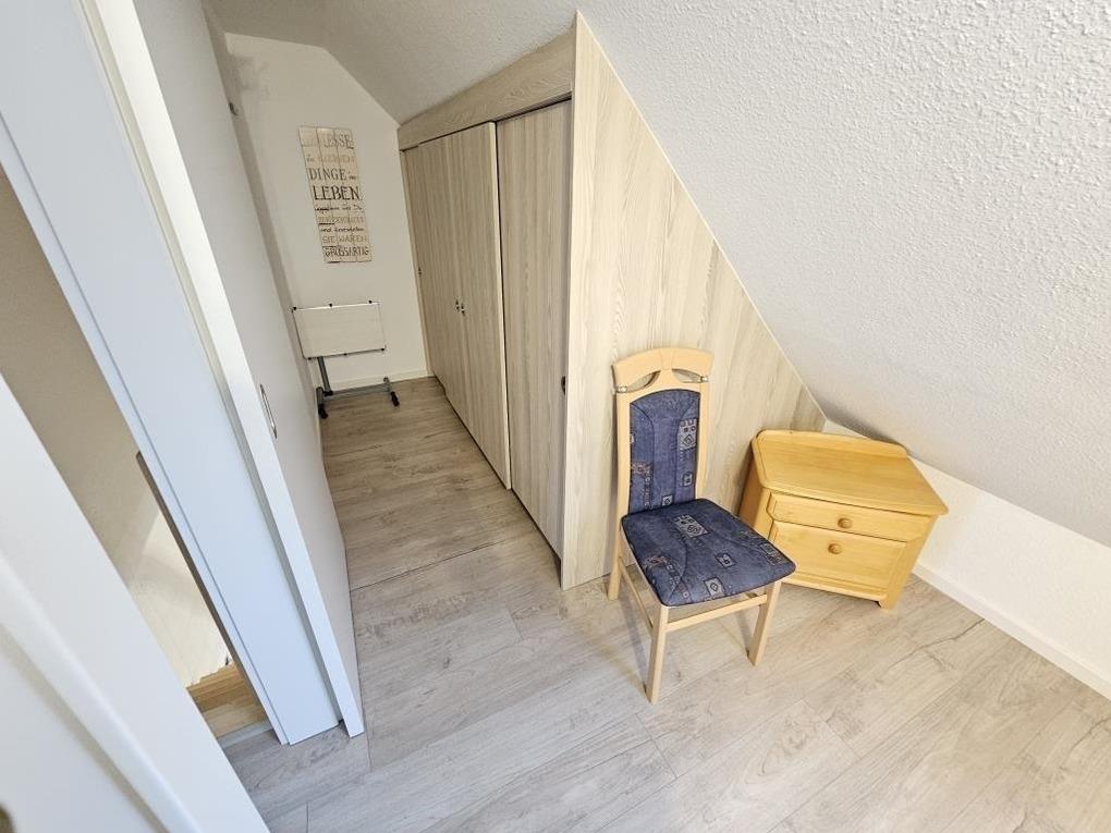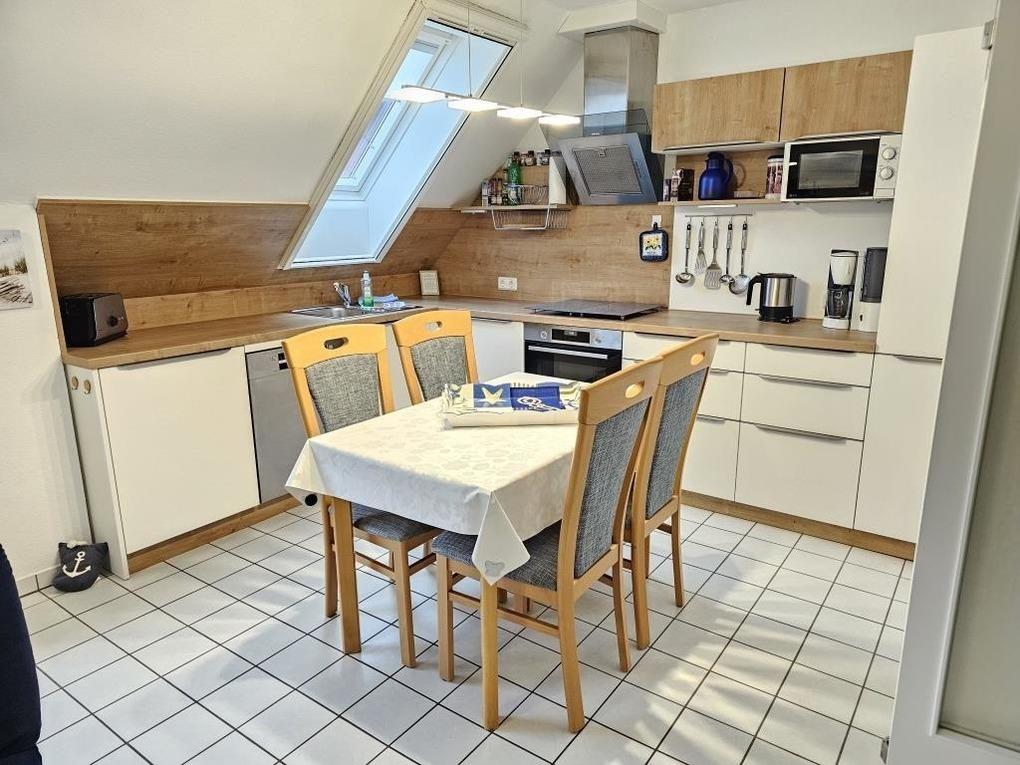 Es stehen Ihnen 2 Schlafräume im Dachgeschoss zur Verfügung (1 Doppelbett und 2 Einzelbetten). 1 Wohnraum mit gemütlichem Sofa und Essplatz und TV. Die Küchenzeile ist mit einem Kühlschrank, einem Backofen, einem Ceranfeld und einem Geschirrspüler ausgestattet. 1 Badezimmer mit Dusche / WC.