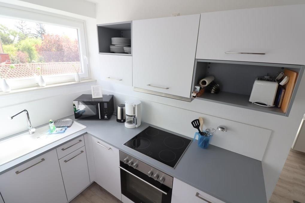 Es stehen Ihnen 3 Schlafräume zur Verfügung (1 Etagenbett und 2 x 1 Doppelbett). 1 Wohnraum mit gemütlichem Sofa und Essplatz und Smart-TV. Die Küchenzeile ist mit einem Kühlschrank, einem Backofen, einem Ceranfeld und einem Geschirrspüler ausgestattet. 1 Badezimmer mit Dusche / WC.