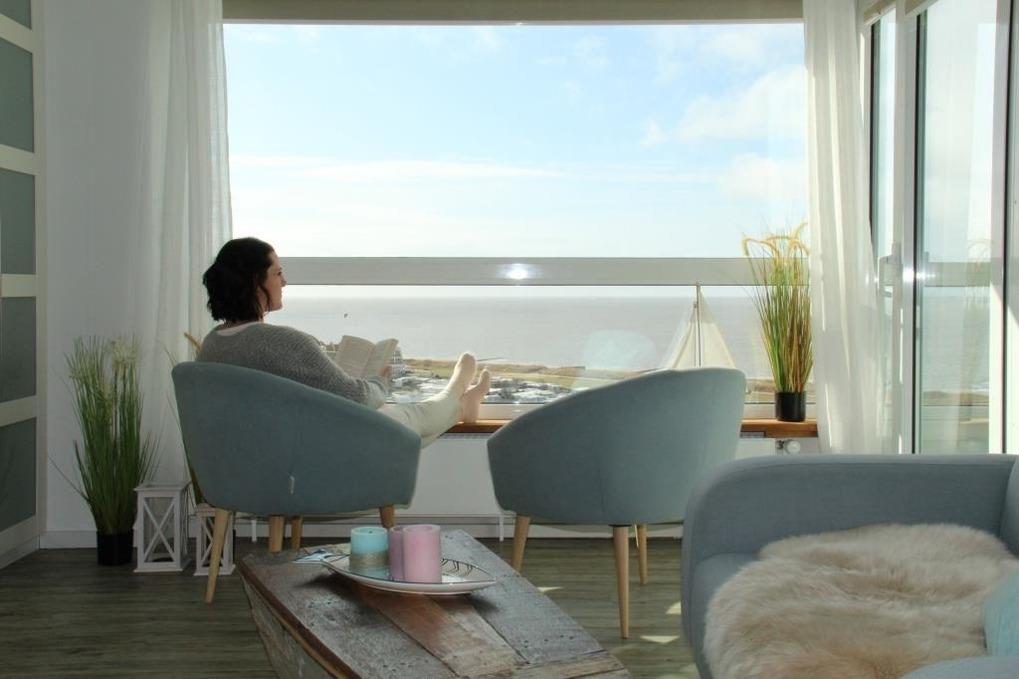 Erleben Sie eine komfortable Ferienwohnung mit Meerblick und Balkon in Cuxhaven-Sahlenburg.