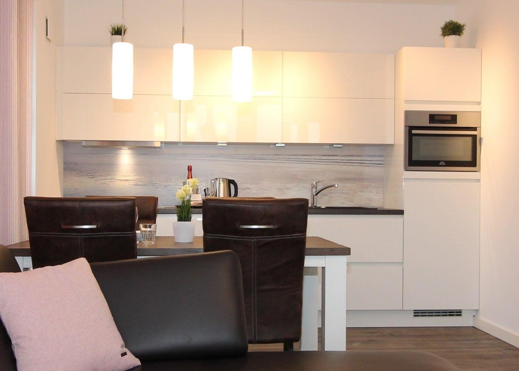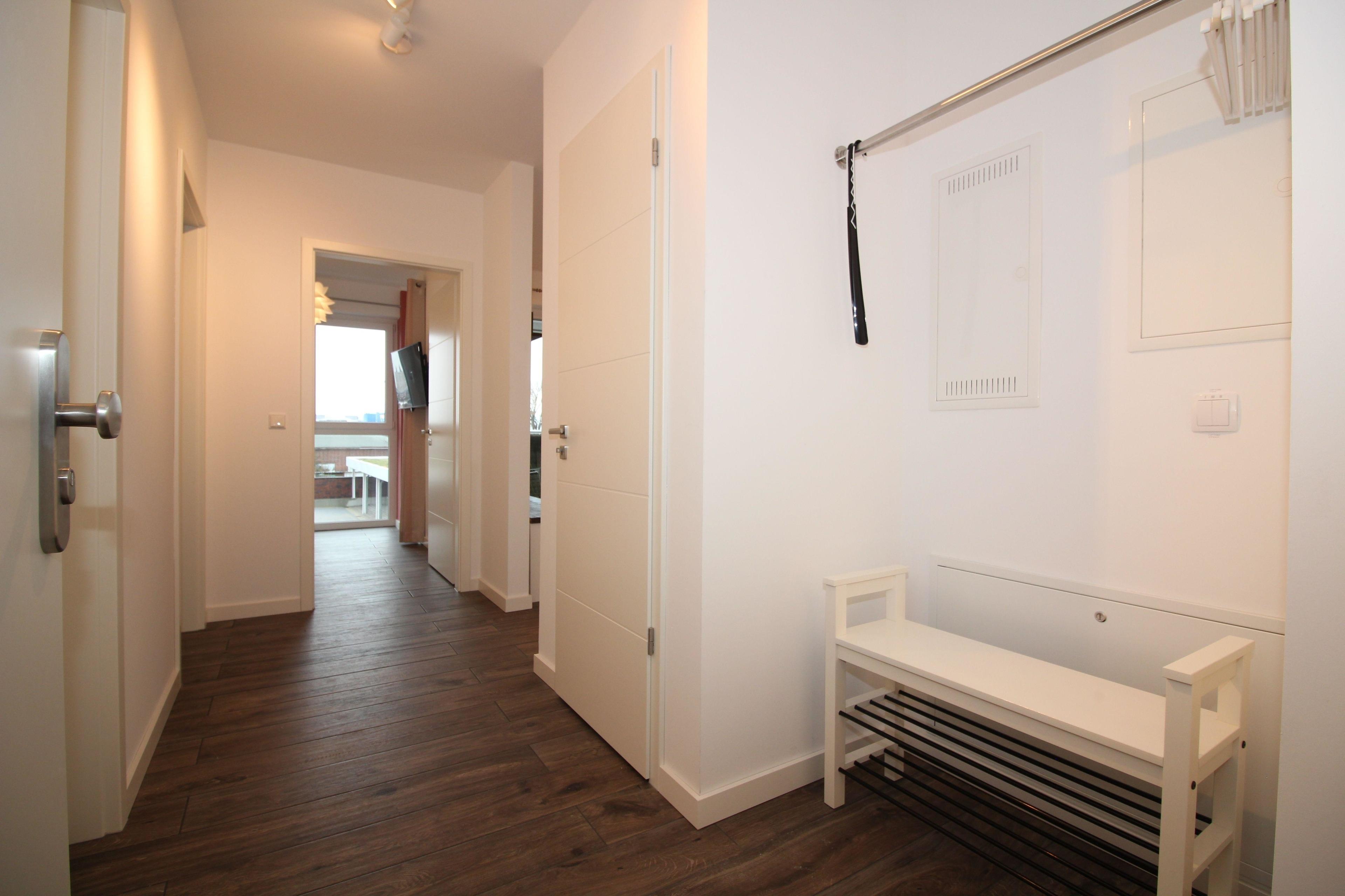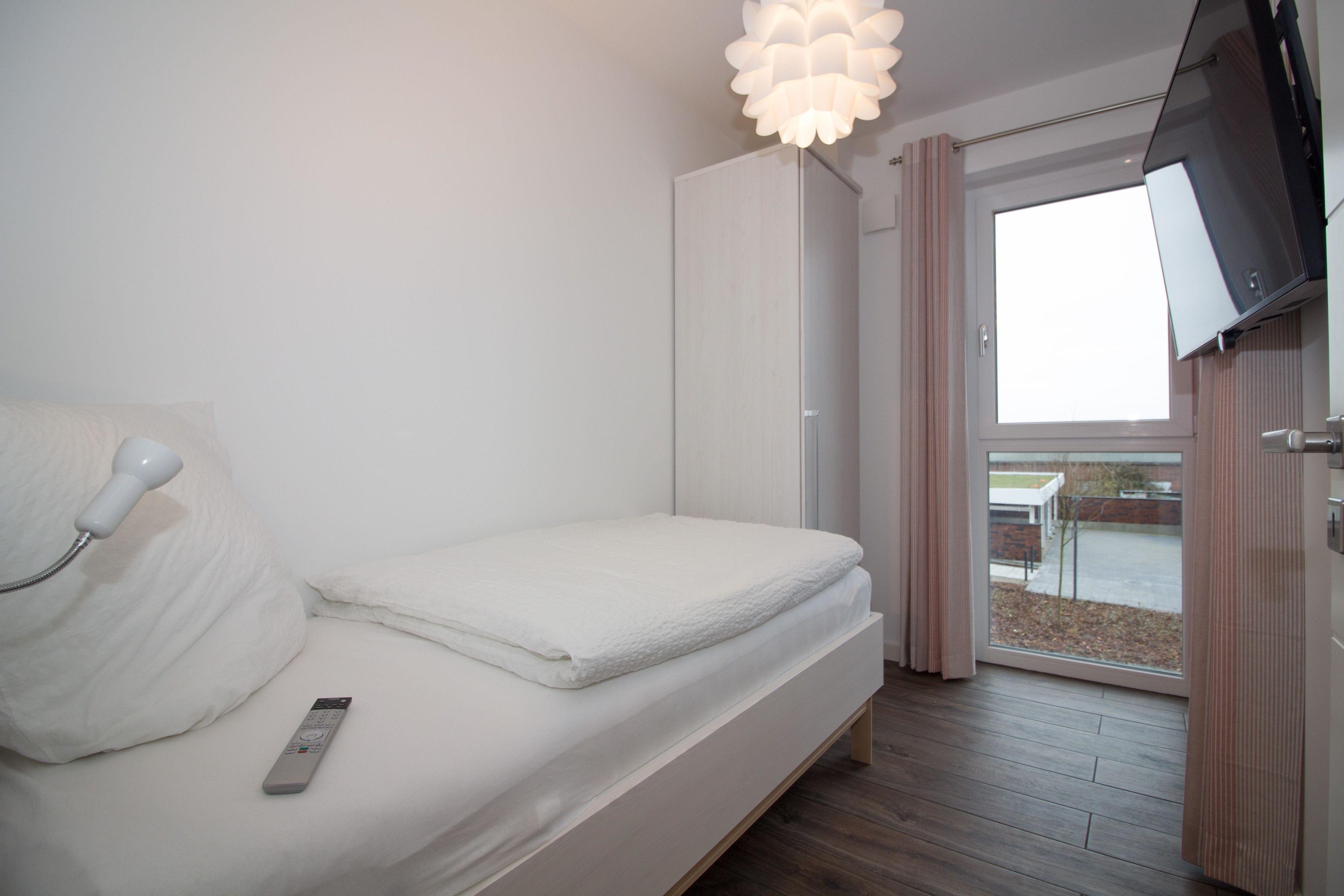 Ferienwohnung an der City-Marina für 4 Personen auf ca. 70qm, bezaubernde 3-Zimmer Luxus Ferienwohnung in der 1. Etage mit Seesicht, Lift, Fußbodenheizung und Lüftungsanlage, elektrisch verstellbare Boxspringbetten im Schlafzimmer I und hohes Einzelbett im Schlafzimmer II, 140cm breites hochwertiges Schlafsofa im Wohnbereich, voll ausgestattete Küche mit Mikrowelle + Spülmaschine.
