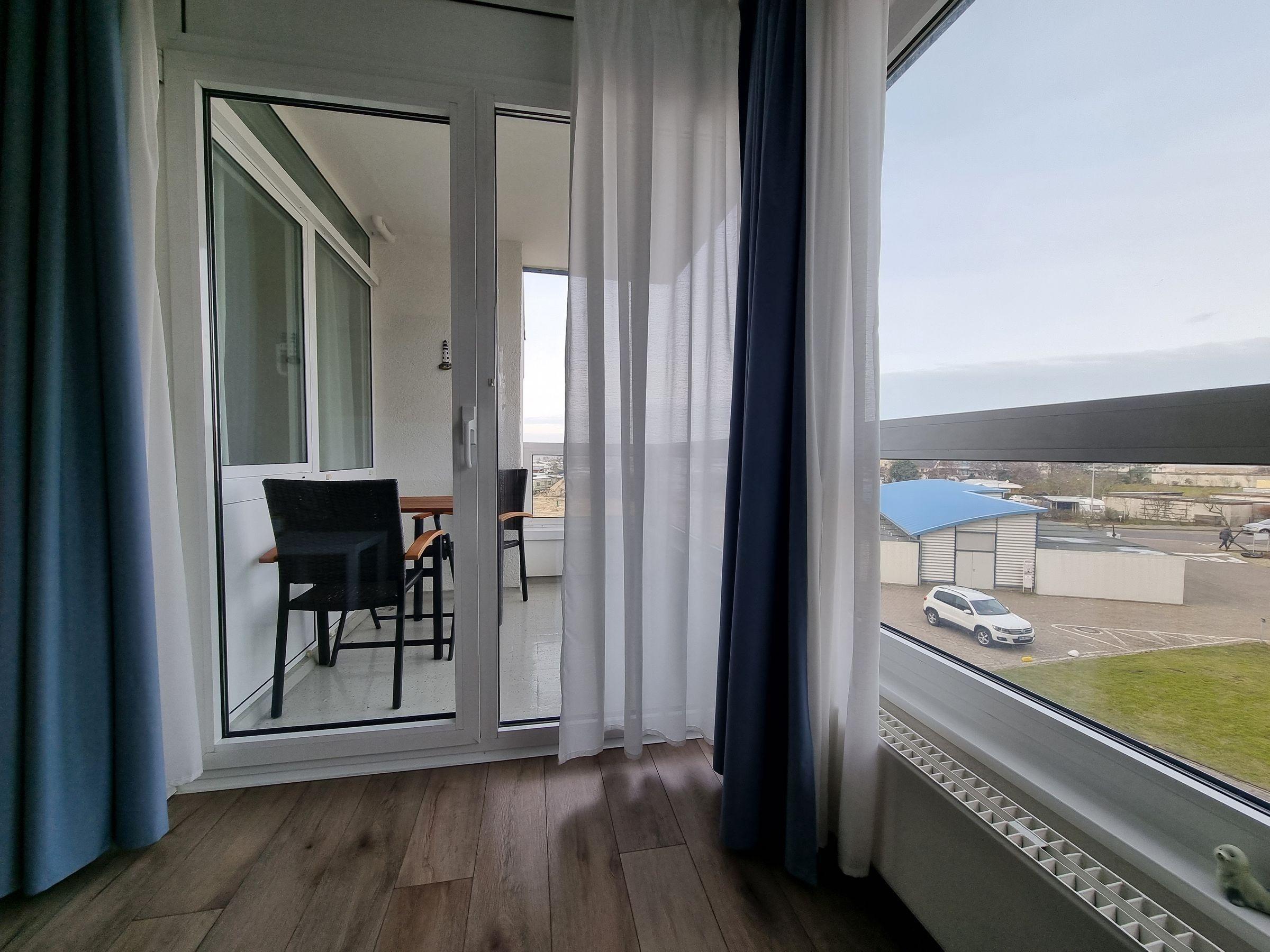 Gemütliche Ferienwohnung in Cuxhaven mit Meerblick, Balkon, Sauna und Pool für erholsame Strandtage.