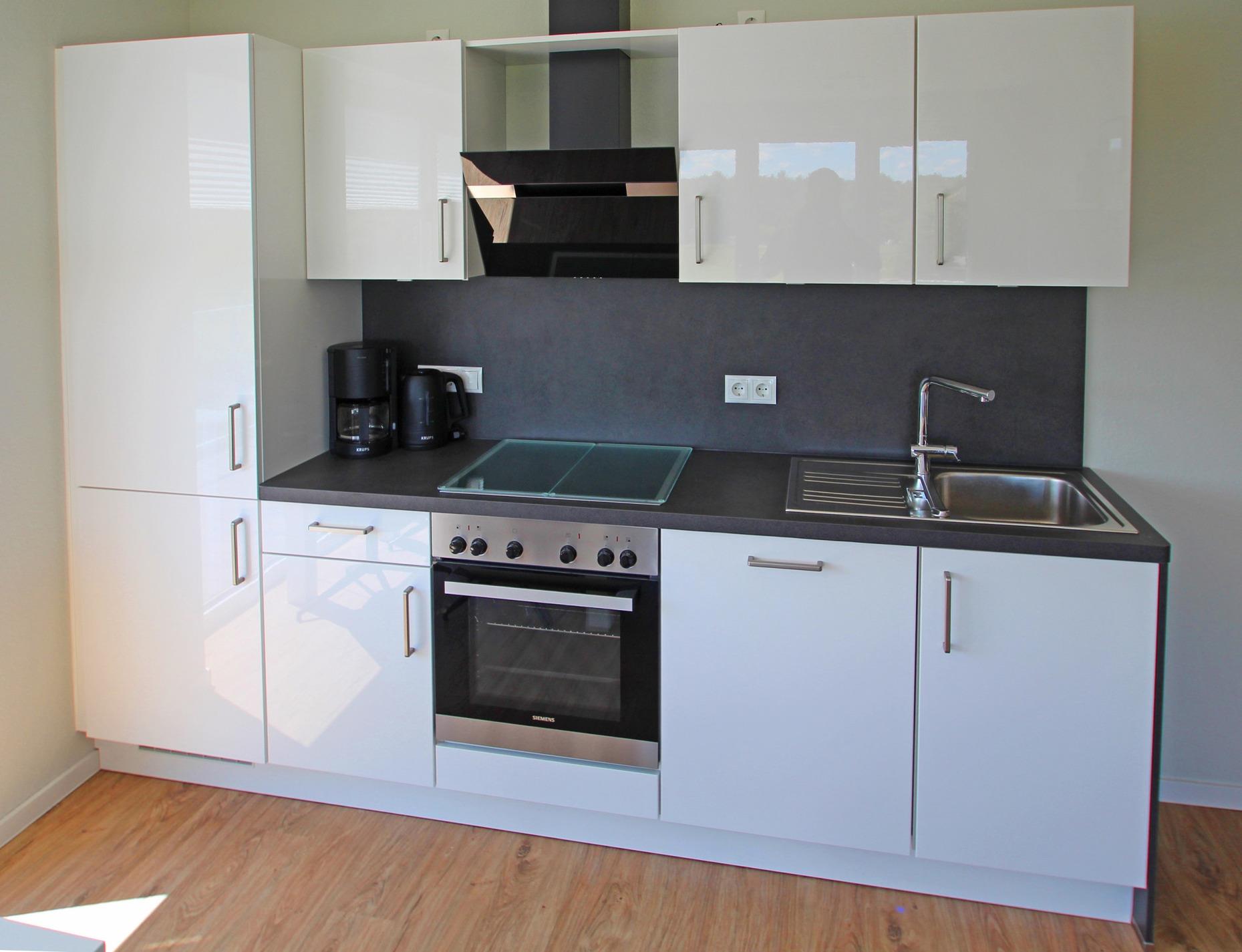Das Wohn-/Esszimmer mit offener Küche bietet ausreichend Platz für einen erholsamen Urlaub mit der Familie und die Ausstattung lässt keine Wünsche offen.