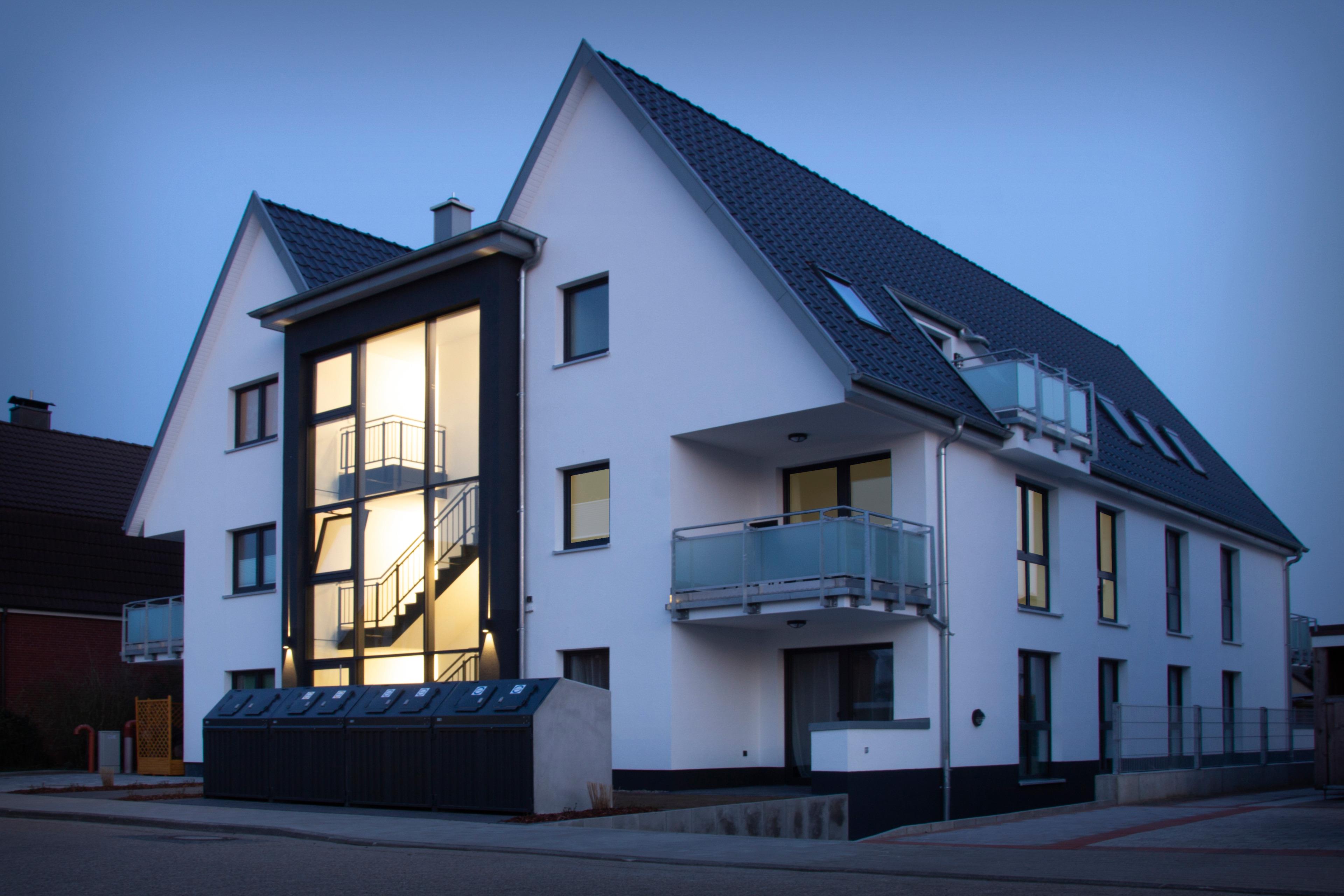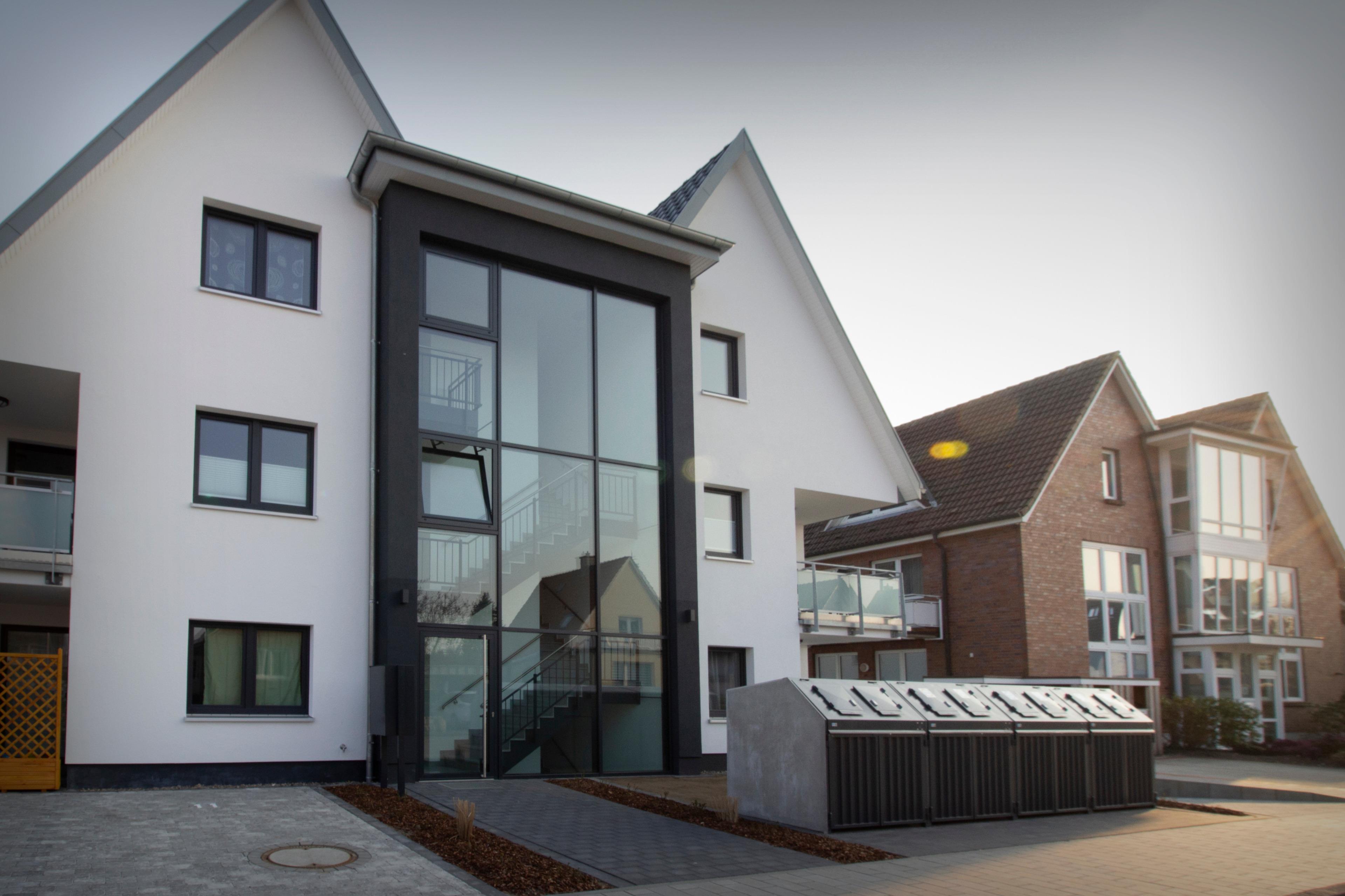 Das Haus wurde erst im Herbst 2021 fertiggestellt. Das moderne Architektenhaus verfügt über einen hellen Treppenaufgang, einen Aufzug, eine großzügige Tiefgarage und einen überdachten Fahrradabstellplatz.
