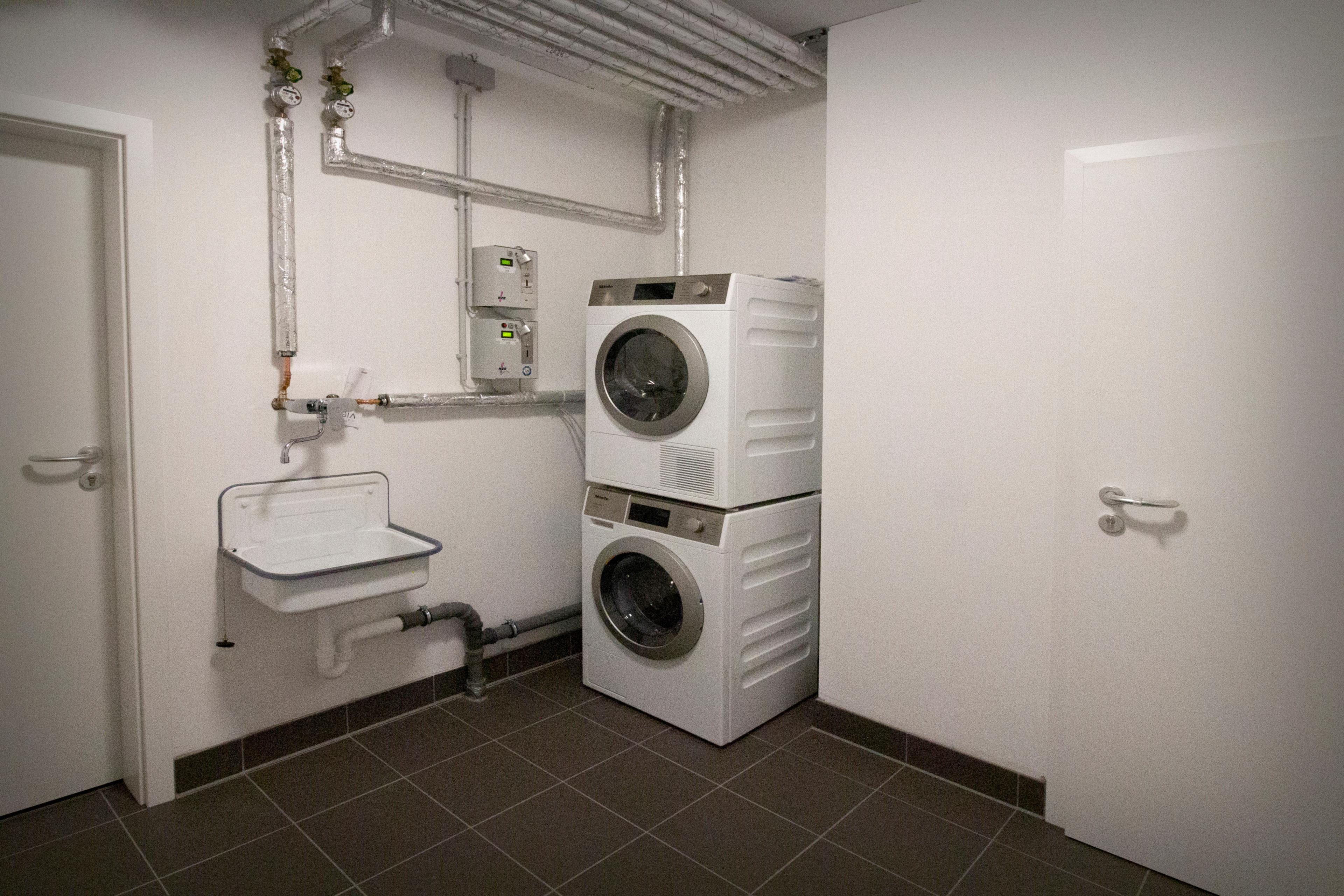 Im gemeinschaftlich genutzten Wasch- und Trockenraum stehen Ihnen hochwertige Münzgeräte von Miele zur Verfügung.