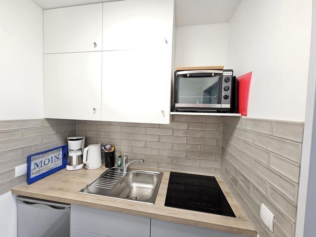 Diese schöne Wohnung befindet sich in der 7. Etage des Hauses und verfügt über alle Annehmlichkeiten für einen entspannten Urlaub hier bei uns in Sahlenburg. In der Küchenzeile, inklusive Kühlschrank und einem Ceran-Herd, lassen sich kleine Köstlichkeiten zubereiten. Der Wohn-Schlafraum verfügt über ein Schrankbett (2x0,90mx2,00m), einen Esstisch, 2 Loungessel zum entspannen und einen Kleiderschrank. TV und Radio rundet das Angebot für Sie ab. Im Badezimmer befindet sich eine Badewanne und ein WC. WLAN ist vorhanden und darf kostenlos genutzt werden.