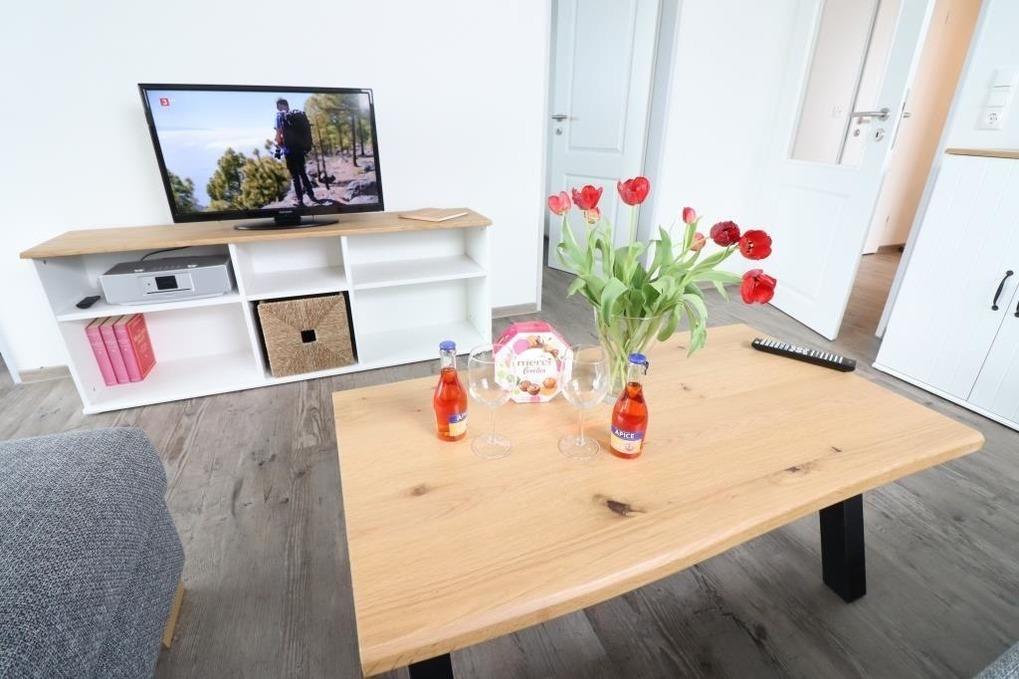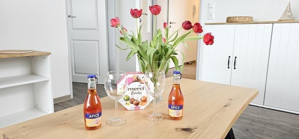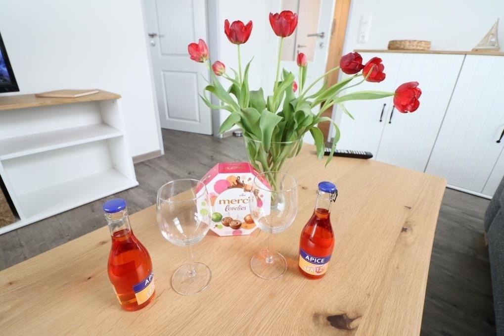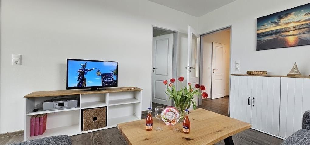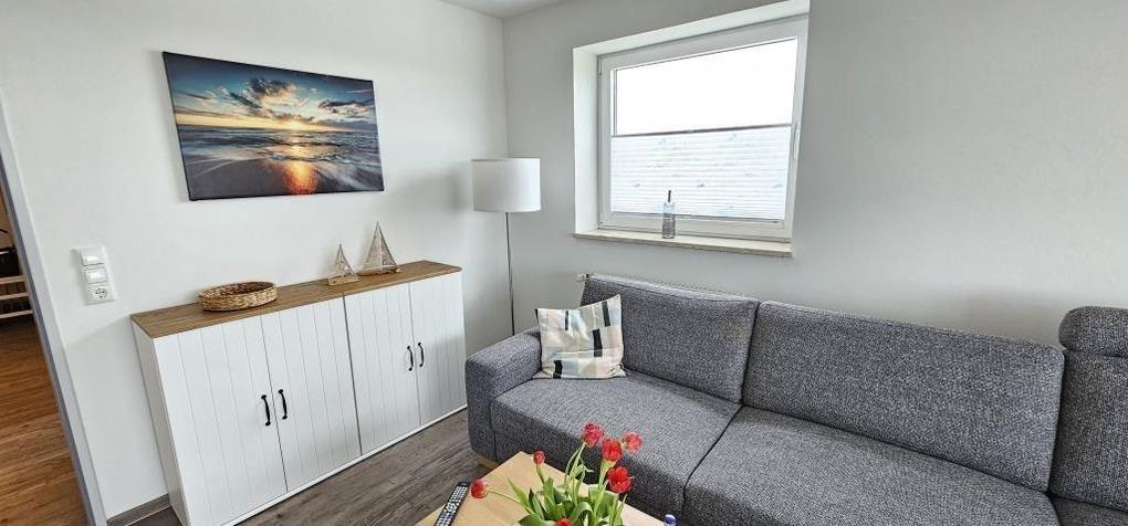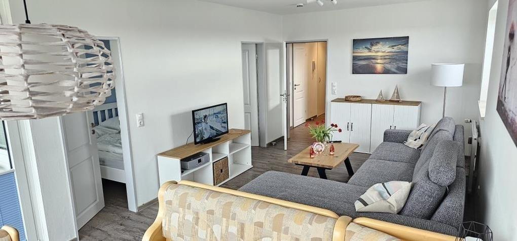 Moderne Ferienwohnung mit Meerblick und Balkon in Cuxhaven, ideal für entspannte Tage am Wattenmeer.