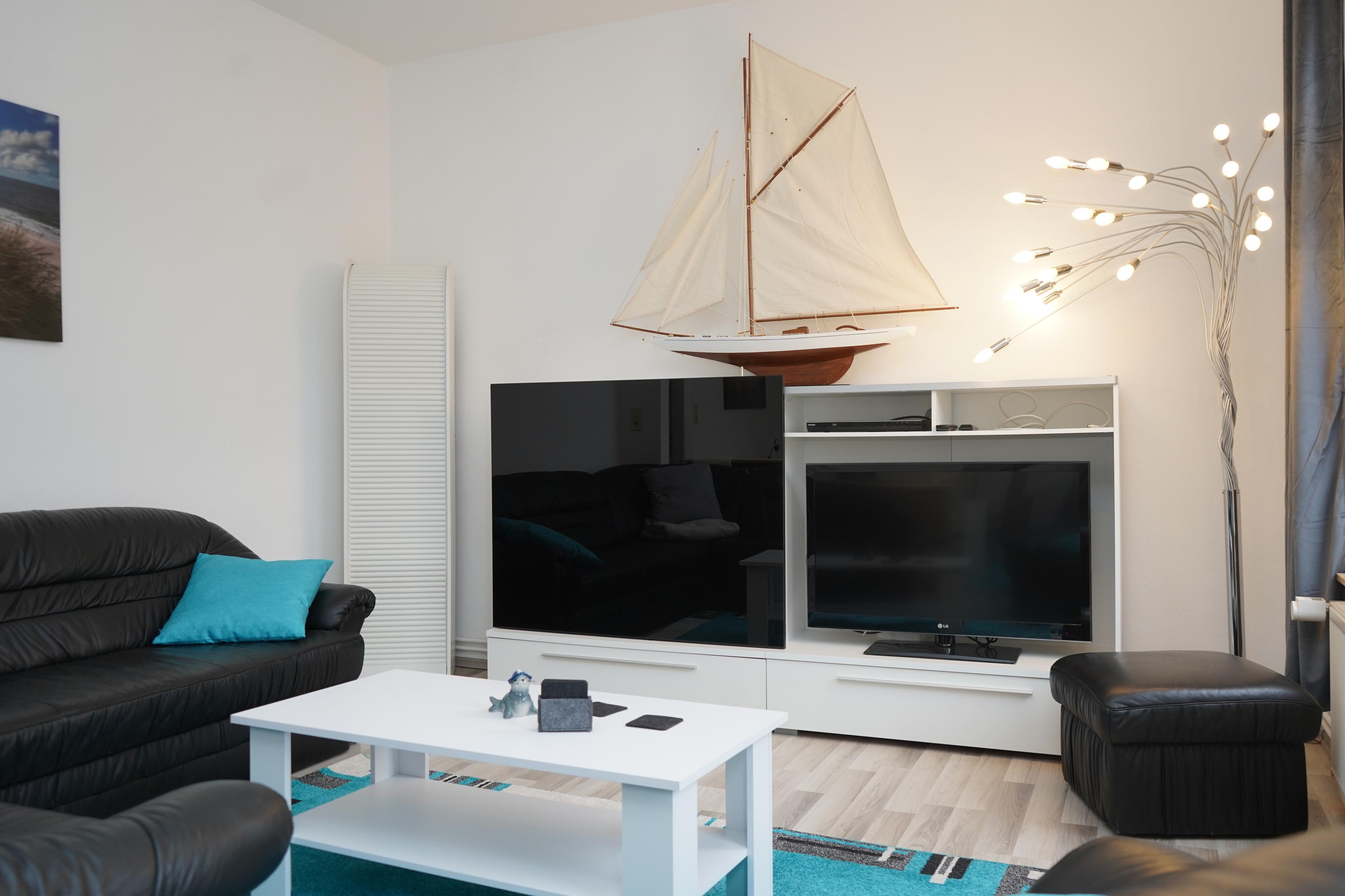 Genießen Sie beste Unterhaltung mit unserem hochwertigen Smart-TV im gemütlichen Wohnzimmer. Für eine zuverlässige Verbindung sorgt das schnelle, kostenfreie WLAN, das Ihnen während Ihres gesamten Aufenthalts zur Verfügung steht.