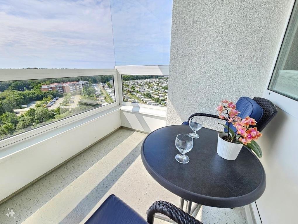 Moderne Ferienwohnung in Cuxhaven mit Balkon und Meerblick, inklusive Sauna und Schwimmbad.