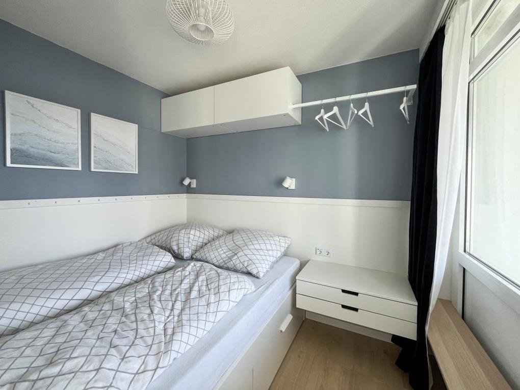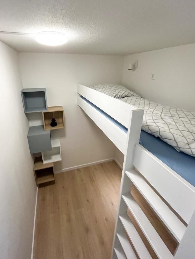 Die Wohnung verfügt über insgesamt zwei Schlafzimmer, die ideal für Familien geeignet sind. Im ersten Schlafraum erwartet Sie ein gemütliches Doppelbett, das Ihnen erholsame Nächte verspricht. Im zweiten Schlafraum befindet sich ein Hochbett, das besonders für Kinder ein abenteuerliches Schlafvergnügen bietet.