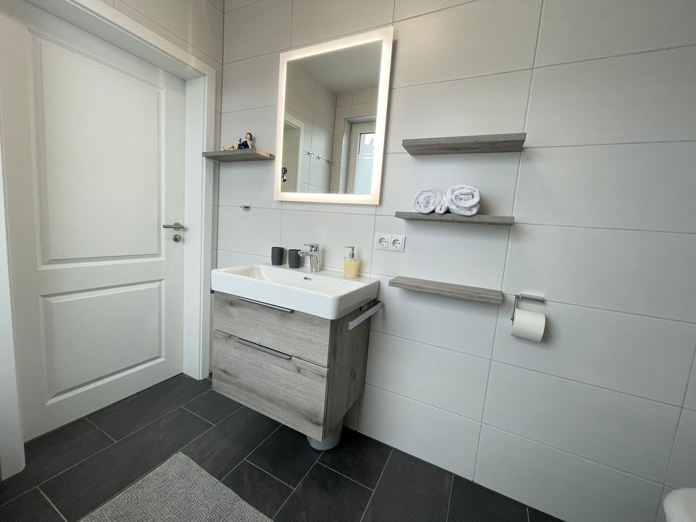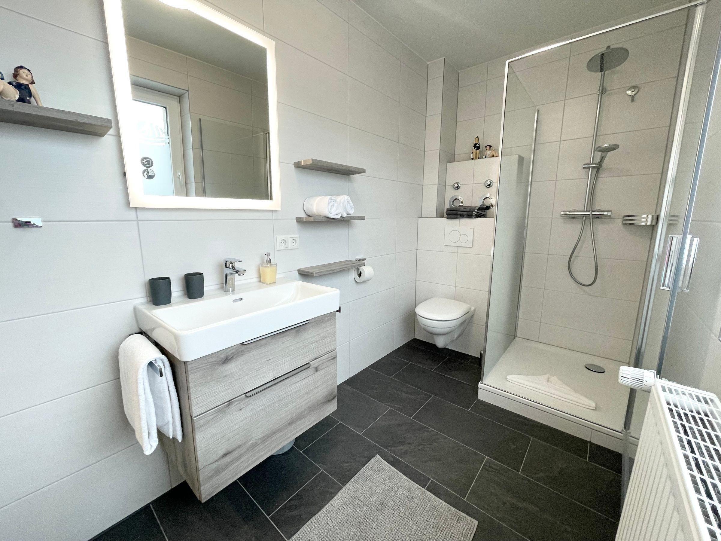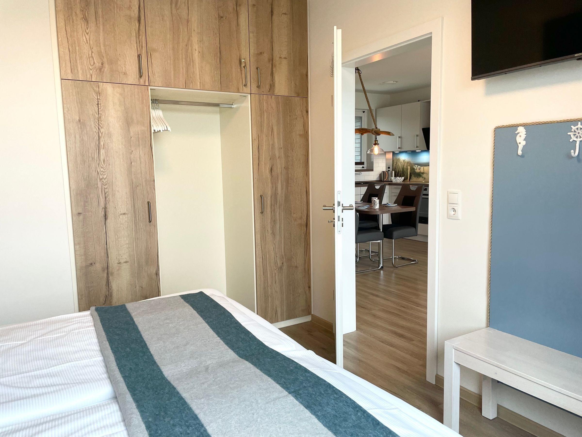 Die strandnahe Ferienwohnung bietet Platz für bis zu 5 Personen und zeichnet sich durch ein gemütliches Schlafzimmer mit Doppelbett sowie ein weiteres Schlafzimmer mit Etagenbett aus. Im Wohnzimmer befindet sich ein komfortables Schlafsofa, ideal für zusätzliche Gäste. Die gut ausgestattete Küche lädt dazu ein, selbst zubereitete Mahlzeiten zu genießen. Ein modernes, großzügiges Badezimmer sorgt für zusätzlichen Komfort. Der Balkon ermöglicht einen atemberaubenden Meerblick und bietet einen Ort zur Entspannung. Für eine zusätzliche gemeinschaftliche Erfahrung steht eine große Dachterrasse zur Verfügung, die perfekte Aussicht und Raum für gesellige Stunden bietet. Zudem können Fahrräder sicher im ebenerdig gelegenen Fahrradkeller untergestellt werden, und das Haus verfügt über einen Aufzug für einen bequemen Zugang zu den oberen Etagen.