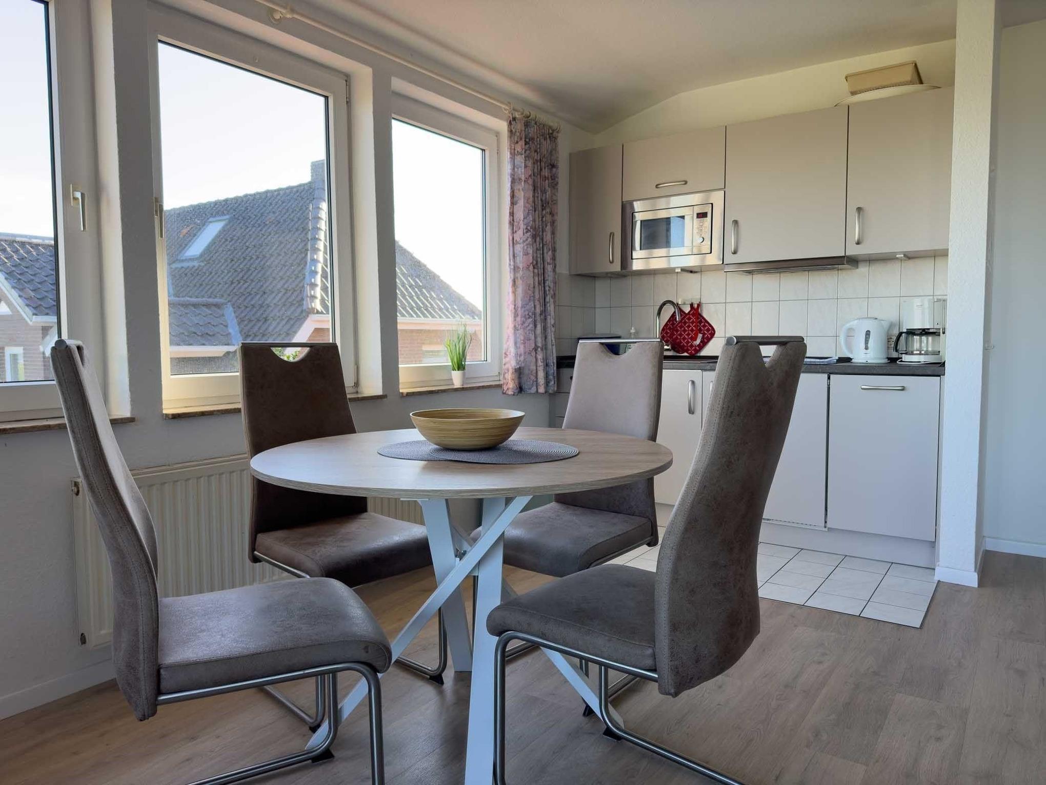 Im "Haus Nordseeperle Meerblick Apartment 11" erwartet die Gäste eine moderne Ferienwohnung mit einer Fläche von 46 m², die Platz für bis zu vier Personen bietet. Die Unterkunft verfügt über ein gemütliches Schlafzimmer und einen offenen Wohnbereich. Die voll ausgestattete Küche bietet moderne Geräte wie Herd, Mikrowelle, Kühlschrank und Geschirrspüler, während der Esstisch im Wohnbereich einladende Mahlzeiten ermöglicht. Ein modernes Badezimmer mit Dusche und Wanne ergänzt die Ausstattung. Zur Entspannung steht eine hauseigene Sauna zur Verfügung. WLAN und ein Fernseher runden den Komfort ab. Haustiere sind auf Anfrage willkommen, und die Wohnung ist kinderfreundlich. Praktische Annehmlichkeiten wie Waschmaschine und Trockner sind gemeinschaftlich nutzbar. Die Lage ist optimal, mit nur 20 Metern zum Meer und 50 Metern zum Strand, ideal für einen erholsamen Urlaub an der Nordsee.