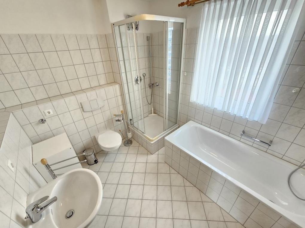 Das Badezimmer ist ausgestattet mit einer Dusche und einer Badewanne sowei einem WC und sorgt somit für einen besonderen Komfort.
