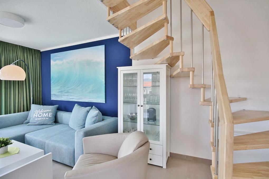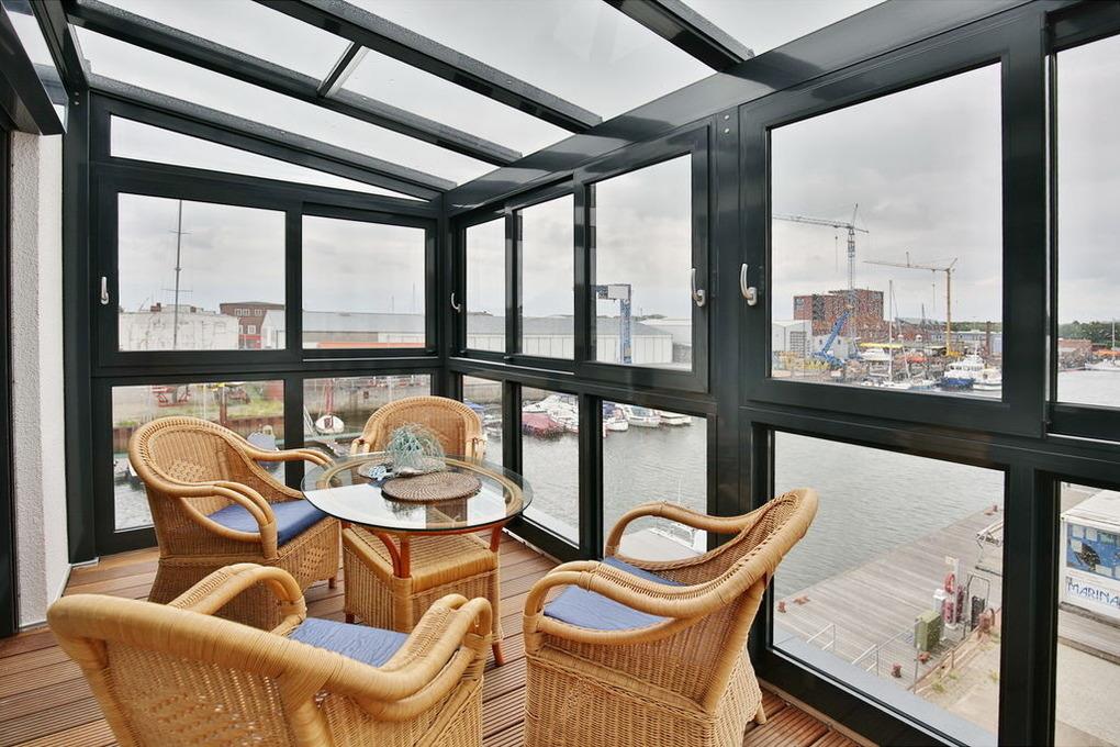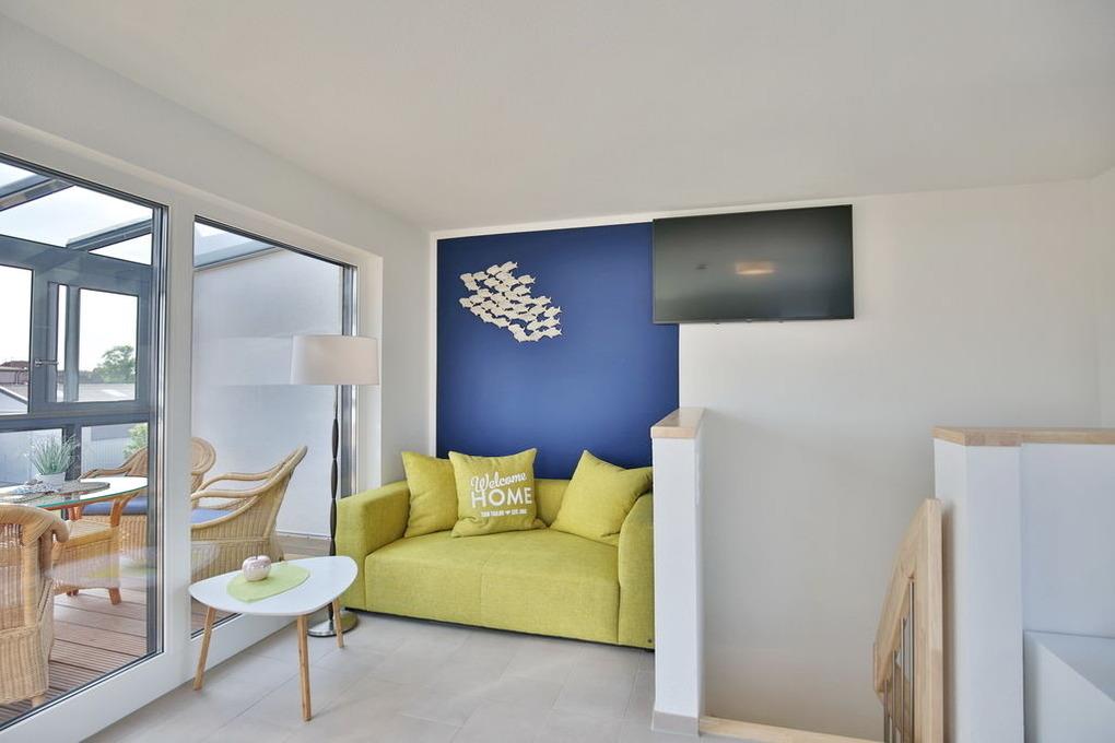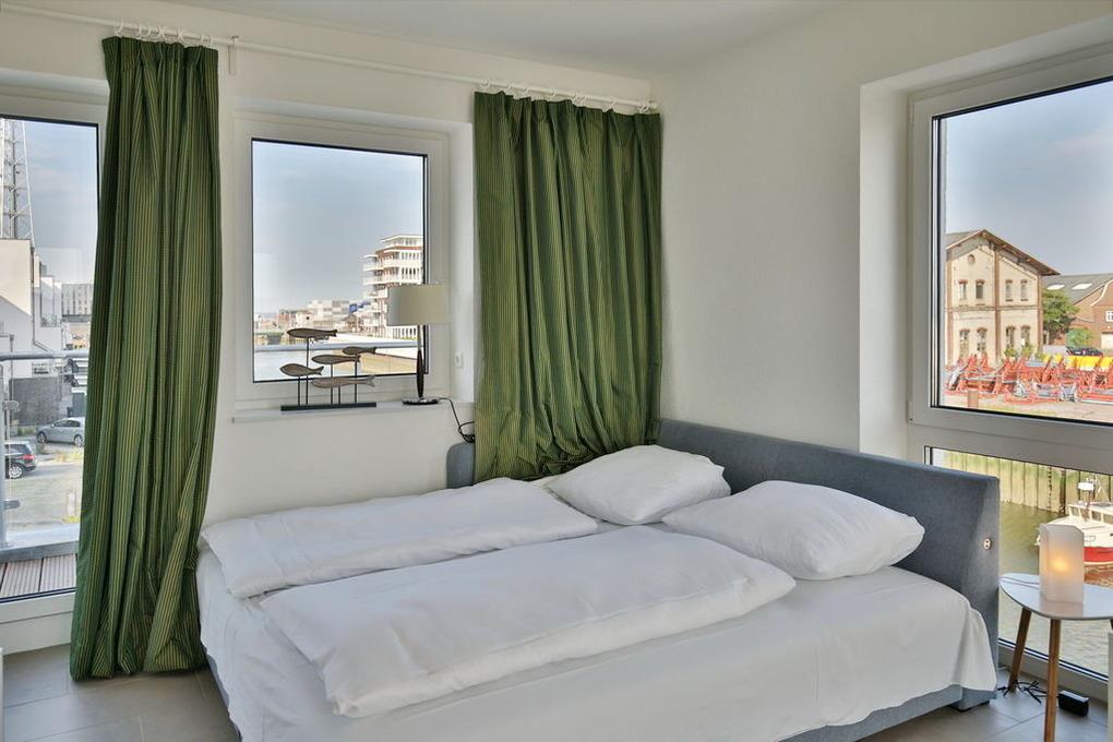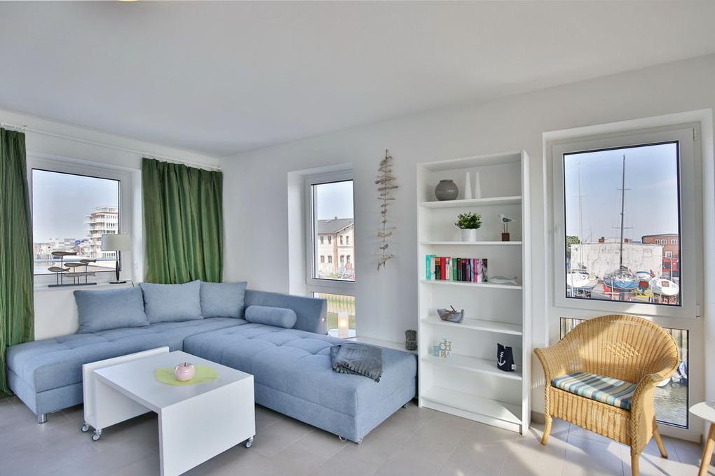 Exklusiver Luxusneubau direkt am Wasser für bis zu 6 Personen auf 3 Etagen. EG: Großzügiges Wohnzimmer mit TV und angrenzendem Wintergarten (süd), offene Küche mit Vollausstattung, Gäste-WC und Garderobe. 1.OG: 2 Schlafzimmer mit Doppelbetten und TV, Bad mit Wanne/Dusche/WC und eigener Sauna mit Blick auf die Boote im Yachthafen, Abstellraum mit Waschmaschine und Trockner. 2.OG: Lichtdurchflutete Lounge mit TV, Ecksofa (kann als Doppelbett gestellt werden kann), separates Relax-Sofa, kleiner Balkon (nord) und einem großen Wintergarten (süd). Alle Räume verfügen über eine Fußbodenheizung, kostenfreies W-Lan, Fahrradschuppen mit eBike-Station, ein KFZ-Stellplatz direkt am Haus, keine Haustiere gestattet, Nichtraucher.