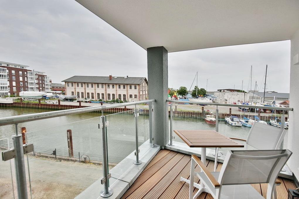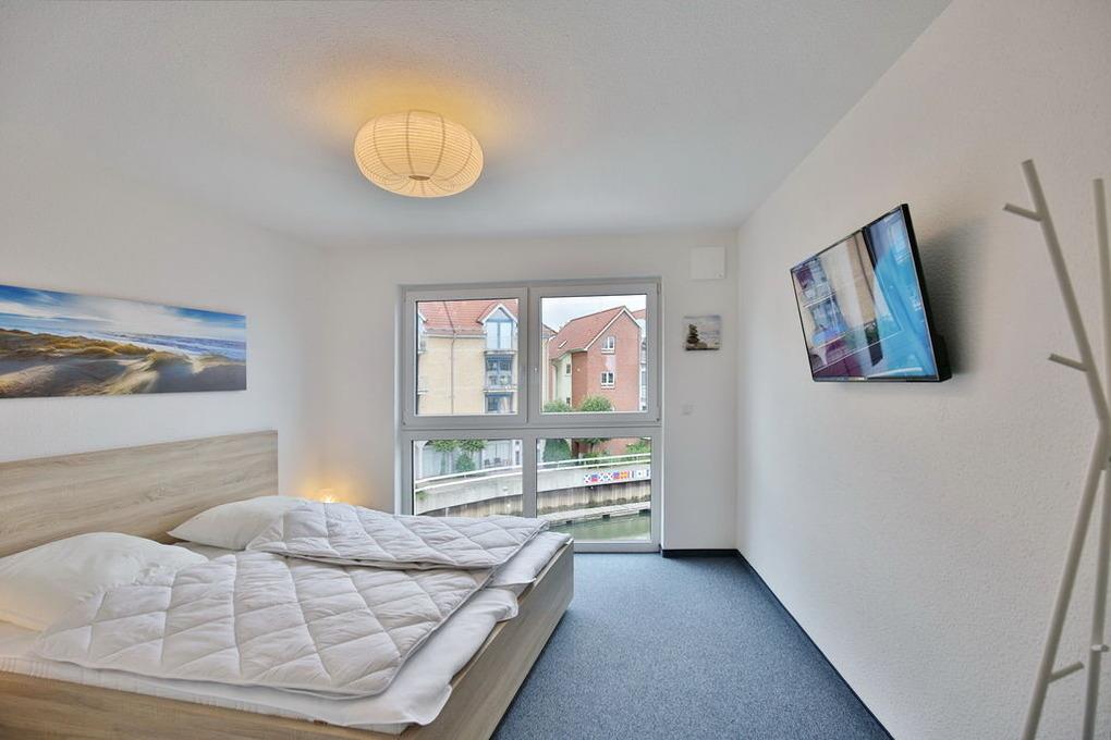 Traumhafter Blick in die City Marina! 2-Raum-Wohnung für max. 3 Pers. in der 2.Etage mit überdachtem Balkon (nord-ost). Voll ausgestattete Küchenzeile mit Backofen, Geschirrspüler etc.. Wohnzimmer mit Schlafsofa,[nbsp][nbsp]2xTV, kostenloses W-Lan, Schlafzimmer mit Doppelbett, Badezimmer mit ebenerdige Dusche/WC, Föhn, alle Fenster mit elktr. Rollläden, Aufzug, Waschmaschine/Trockner i.d. Wohnung, Stellplatz #6 und großer separater Abstellraum mit E-Bike Lademöglichkeit, keine Haustiere und natürlich Nichtraucher.