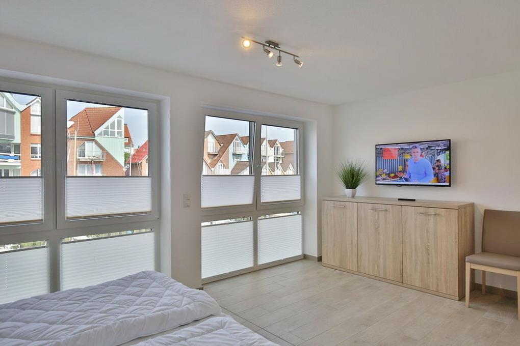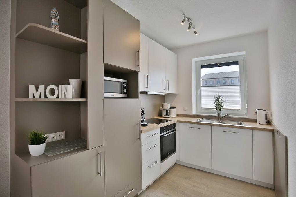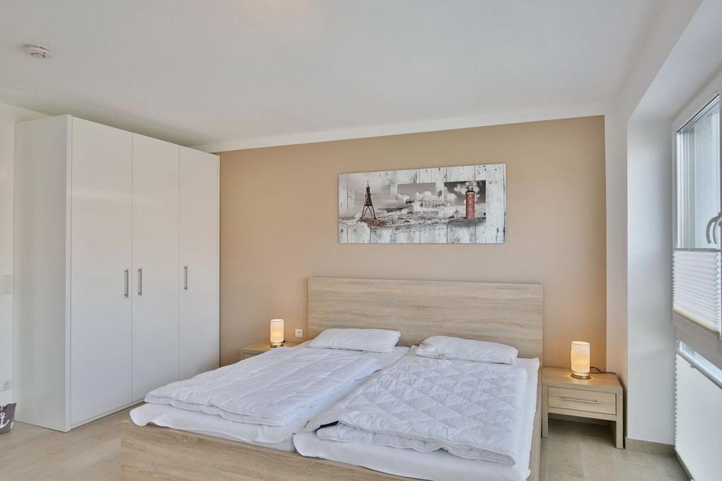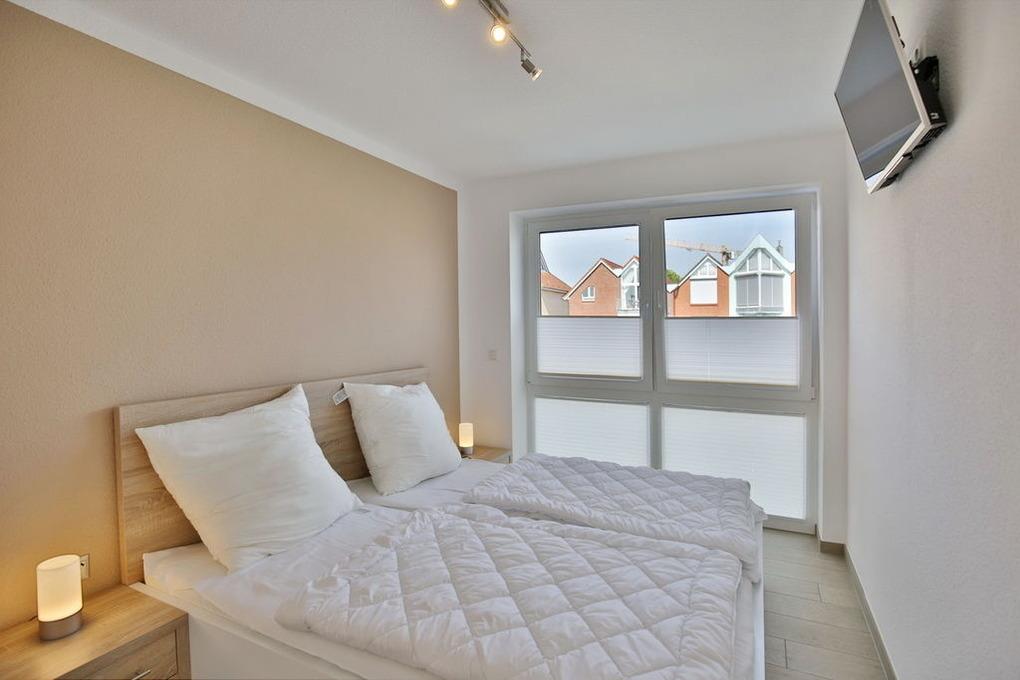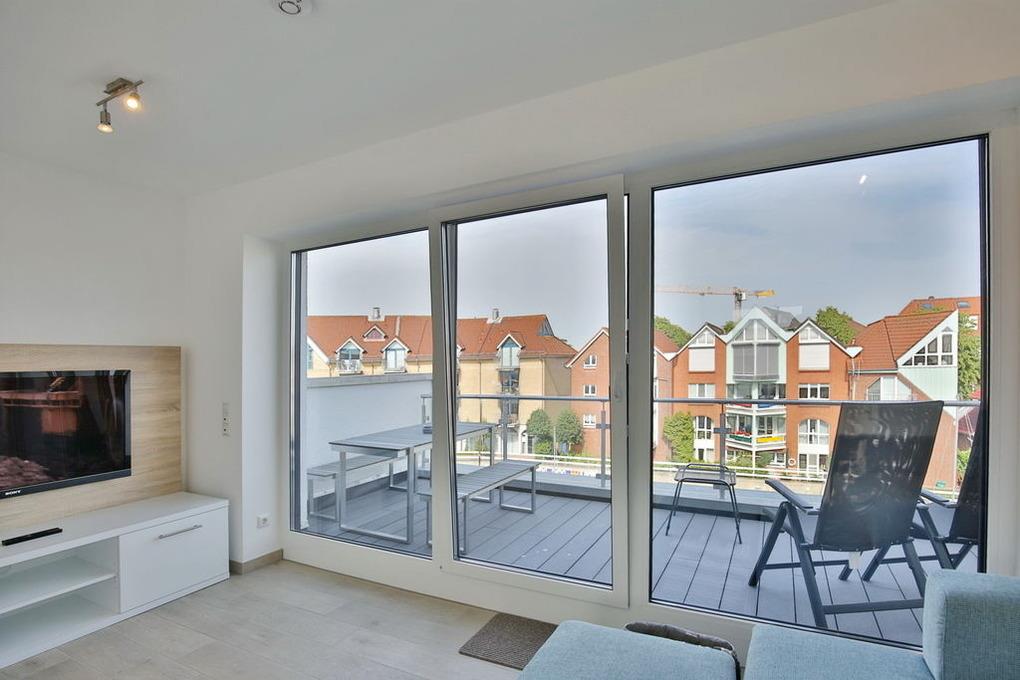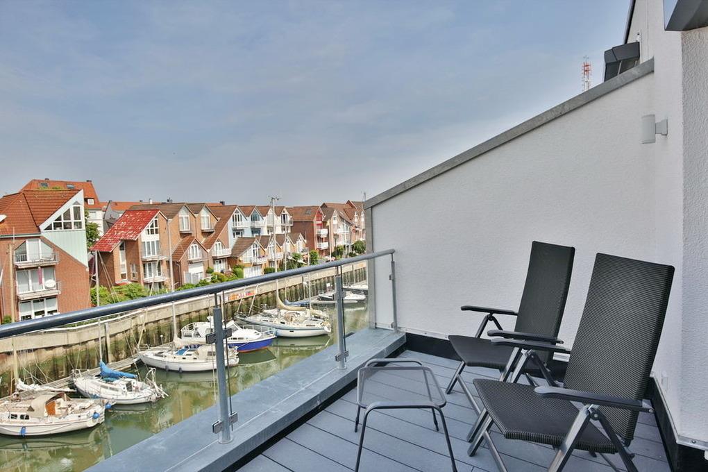 Modernster Neubau für bis zu 6 Pers. auf 4 Etagen mit höchstem Komfort. 2 Wohnzimmer, 3xBalkon/Terrasse, 3 Schlafzimmer mit Doppelbetten, 5 x TV bis 65", Radio mit Bluetooth, Bluray 4K-Player, alle Fenster mit elektrischen Außenrollläden, Fußbodenheizung, W-LAN, offene Küchenzeile (Backofen, Geschirrspüler, Nespresso Maschine etc.), große Terrasse (west) mit Blick in die Marina, Gäste/WC. 1. Etage: Großes Schlafzimmer mit Doppelbett und TV, Du/WC mit Waschmaschine/Trockner [&] 1 Balkon (süd-ost). 2. Etage: Zwei Schlafzimmer (Doppelbetten) [&] TV, Badewanne/Dusche/WC. 3. Etage: Lounge mit großer Dachterrasse (süd-west), Lesecke, TV und kleiner Küchenzeile [&] Kaffeemaschine. Fahrradschuppen (eBike Lademöglichkeit), 1 PKW-Stellplatz am Haus, keine Haustiere gestattet, Nichtraucher.