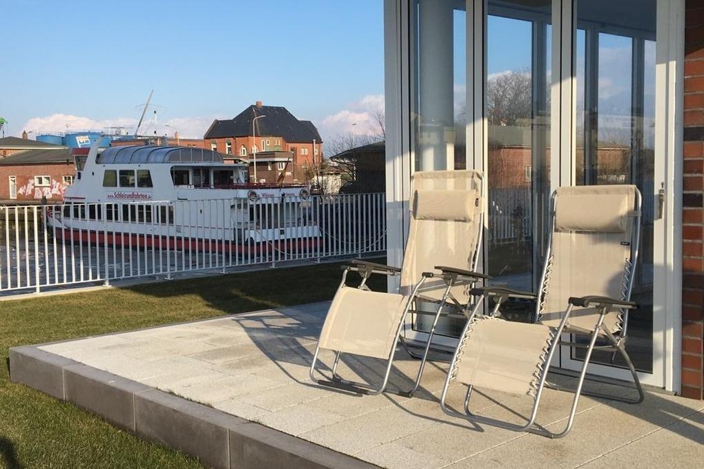 Moderne Ferienwohnung mit Terrasse und Garten am Kai der City Marina in Cuxhaven.