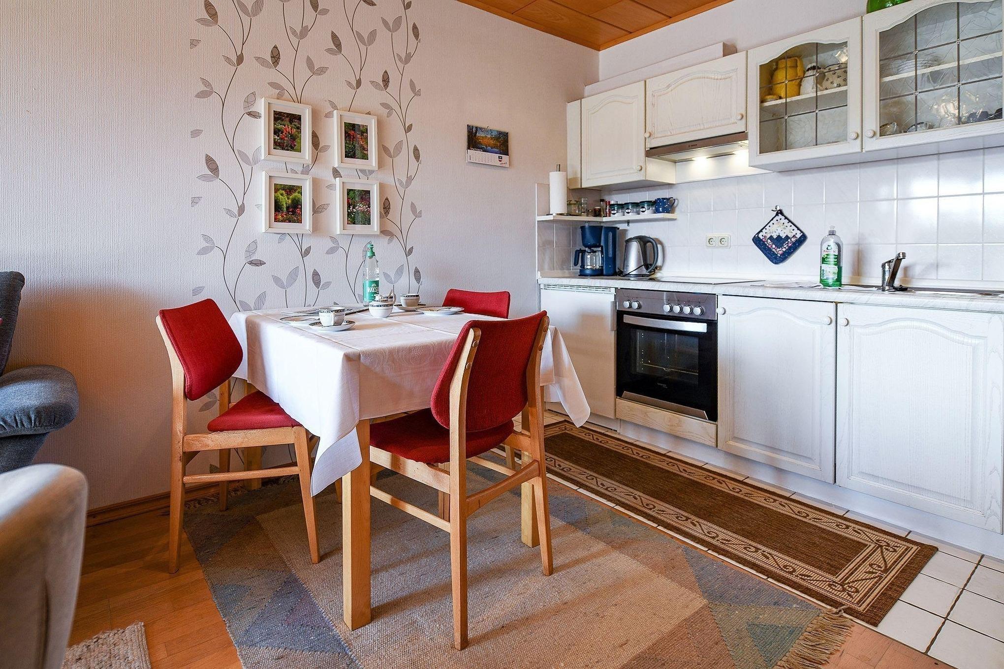 Die Land & Meer Wohnung 22 in Cuxhaven Sahlenburg bietet eine moderne und durchdachte Ausstattung auf 38 Quadratmetern. Die Wohnung verfügt über zwei separate Schlafzimmer mit Parkettboden, die insgesamt drei Schlafmöglichkeiten bieten. Der offene Wohn- und Essbereich ist mit einem komfortablen Sofa, einem Sessel und einem Esstisch ausgestattet. Die voll ausgestattete Küche beinhaltet einen Ceranherd, Elektrobackofen, Kühlschrank sowie alle notwendigen Küchenutensilien. Im Badezimmer finden sich eine Dusche mit Badewanne und ein WC. Zur technischen Ausstattung gehören kostenfreies WLAN und ein Fernseher mit digitalem Kabelanschluss. Für zusätzlichen Komfort stehen eine gemeinschaftlich nutzbare Waschmaschine und ein Trockner im Gebäude zur Verfügung. Ein Balkon lädt zum Relaxen ein. Haustiere sind nach Absprache erlaubt. Ein kostenloser Privatparkplatz in der Garage rundet das Angebot ab. Die Nähe zum Strand und Einkaufsmöglichkeiten macht diese Wohnung besonders attraktiv.