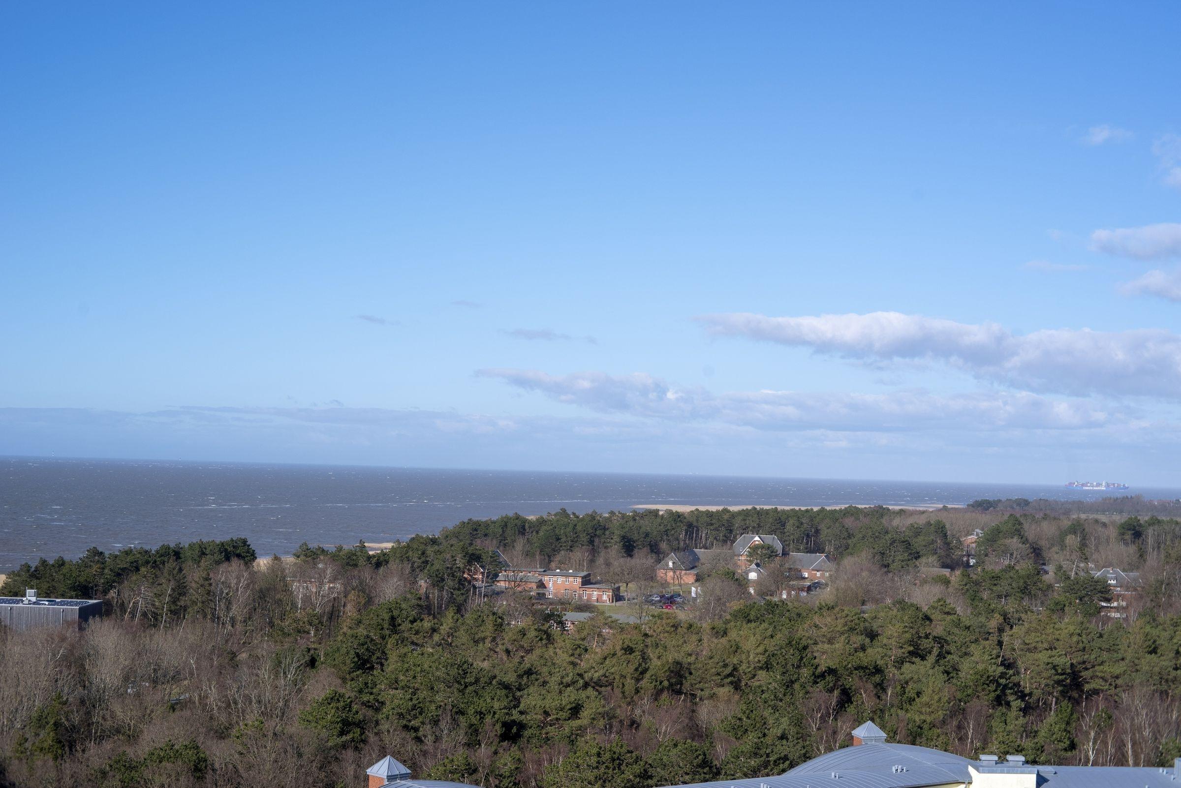 Die Ferienwohnung Frische Brise FeWo 15.09 bietet einen beeindruckenden Außenbereich mit überdachtem Balkon, von dem aus ein atemberaubender Meerblick auf das 200 Meter entfernte Wattenmeer genossen werden kann. Die Lage im 15. Stock eröffnet eine einzigartige Perspektive auf die Küstenlandschaft. Gäste haben zudem Zugang zu einem Indoor-Pool, Wellnessbereich mit Sauna und Ruheraum, die zur Erholung einladen. Sportliche Aktivitäten sind durch den hauseigenen Tennisplatz sowie eine Tischtennisplatte gegeben. Die unmittelbare Umgebung bietet ideale Bedingungen für Outdoor-Aktivitäten wie Wandern, Radfahren oder Wassersport. Gemeinschaftliche Einrichtungen wie Waschmaschine und Trockner stehen für längere Aufenthalte zur Verfügung. Diese Kombination aus komfortablem Wohnambiente und vielseitigen Freizeitmöglichkeiten machen die Frische Brise zu einer attraktiven Wahl für Erholungsuchende in Cuxhaven.
