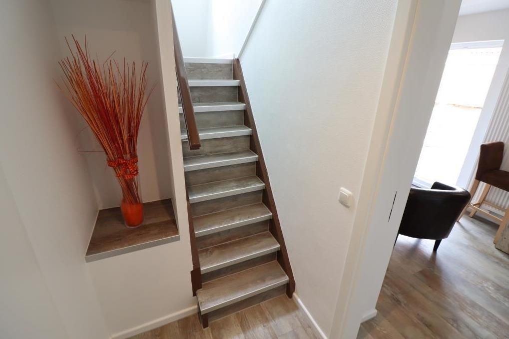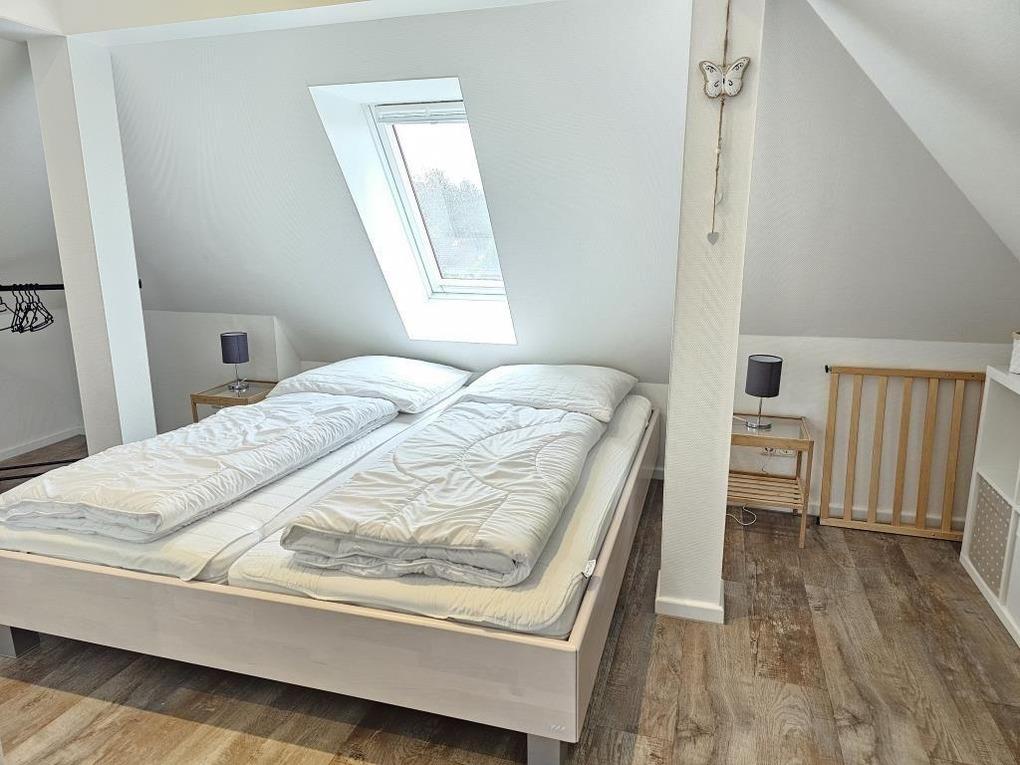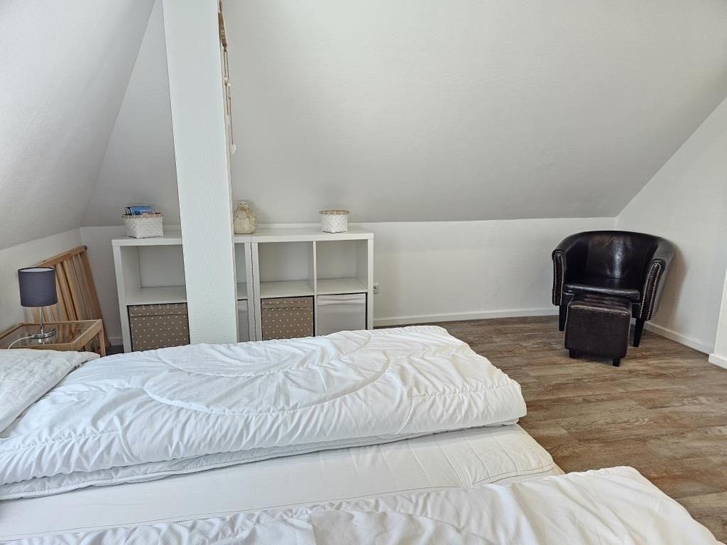 Renovierte Ferienwohnung im 1 OG und DG mit zwei Schlafräumen mit Doppelbetten 1,80mx2m (Schlafräume über Treppe zu erreichen =siehe Fotos), 1 Wohnraum mit Balkon, TV, Radio, neu renoviertes Bad mit Dusche / WC, Föhn, separates WC im Dachgeschoss, Küchenzeile mit Kühlschrank, Gefrierfach, Backofen und Geschirrspüler, Nichtraucher, WLAN kostenlos, Parkplätze am Haus, Gartennutzung, Fahrradunterstellmöglichkeit, Waschmaschine und Trockner gegen Gebühr vorhanden