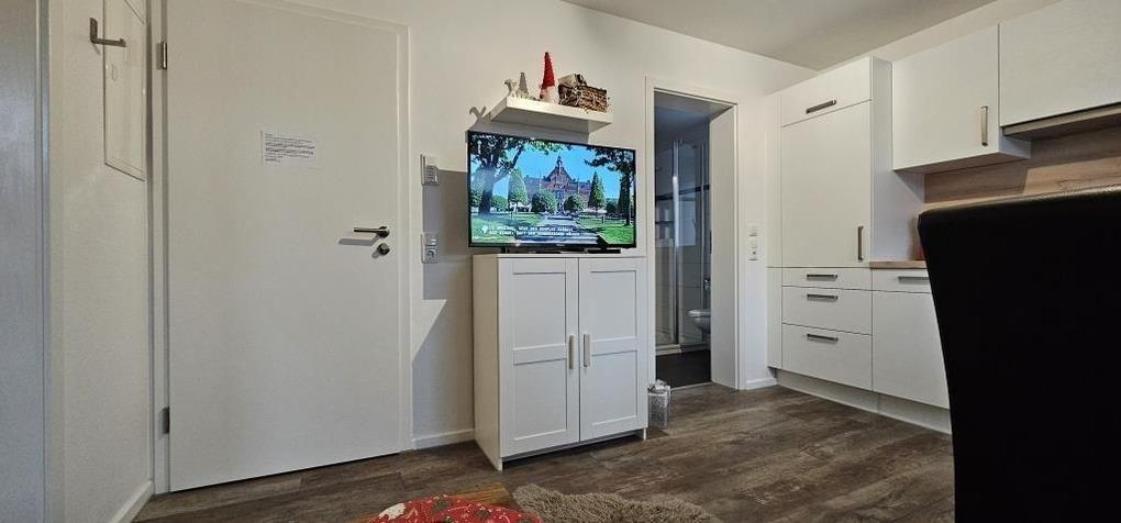 Die Wohnung 11 wurde renoviert und ist hell, modern und gemütlich eingerichtet. Im Schlafraum befindet sich ein Doppelbett 1,80mx2m und im Wohnraum ein Sofa. In der Küchenzeile steht Ihnen eine komplette Haushaltsausstattung zur Verfügung, wie z.B. Kaffeemaschine, Wasserkocher, Toaster, Töpfe, Pfanne, Geschirr, Besteck, Backofen, Ceranfeld, Geschirrspüler und Kühlschrank. Dusche / WC ist vorhanden.