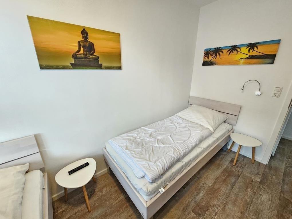 Die Wohnung 6 wurde renoviert und ist hell, modern und gemütlich eingerichtet. Im Schlafraum befindet sich ein Doppelbett 1,80mx2m und im zweiten Schlafraum ein franz. Bett 1,40mx2m und im Wohnraum ist ein Schlafsofa vorhanden. In der separaten Küche steht Ihnen eine komplette Haushaltsausstattung zur Verfügung, wie z.B. Kaffeemaschine, Wasserkocher, Toaster, Töpfe, Pfanne, Geschirr, Besteck, Backofen, Ceranfeld, Geschirrspüler und Kühlschrank. Dusche / WC ist vorhanden. Auch ein Balkon gehört zur Wohnung.