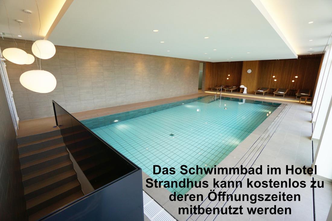 Das Schwimmbad unseres Partnerhotels Strandhus (circa 1,2 km entfernt) können Sie von März bis Oktober jeweils von 8 - 12 Uhr und 14 - 17 Uhr kostenlos nutzen. Haustiere und das Rauchen sind im Apartment sind nicht gestattet. Über unsere App Gastfreund finden sie alles, was sie an Informationen über uns, Sahlenburg und umzu brauchen.