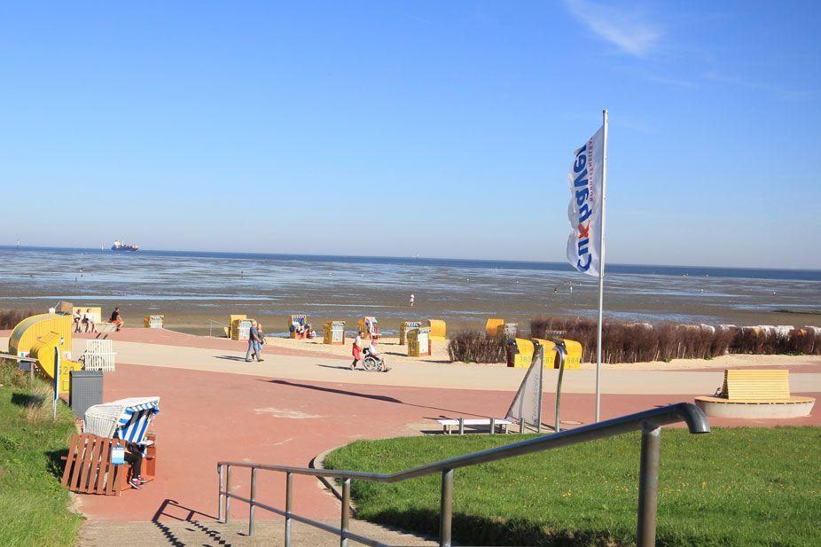 Moderne Ferienwohnung mit seitlichem Meerblick, Strandkorb und WLAN, nur 50 Meter vom Strand in Cuxhaven-Döse entfernt.