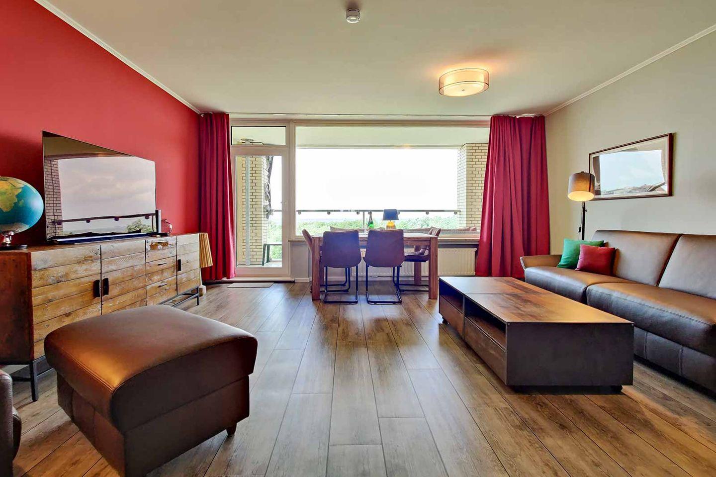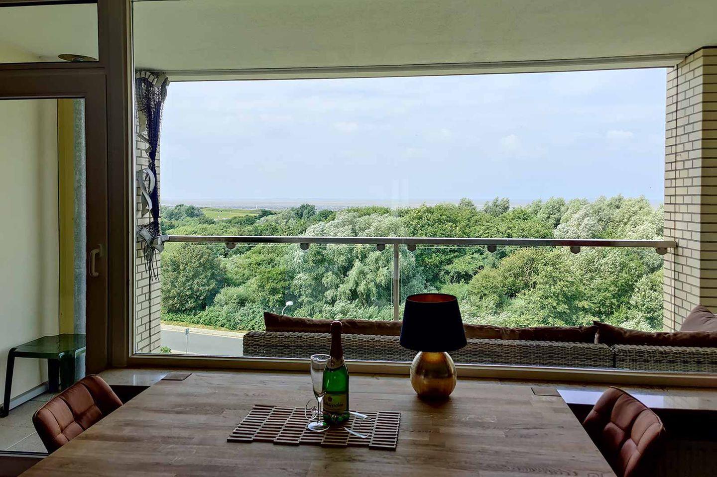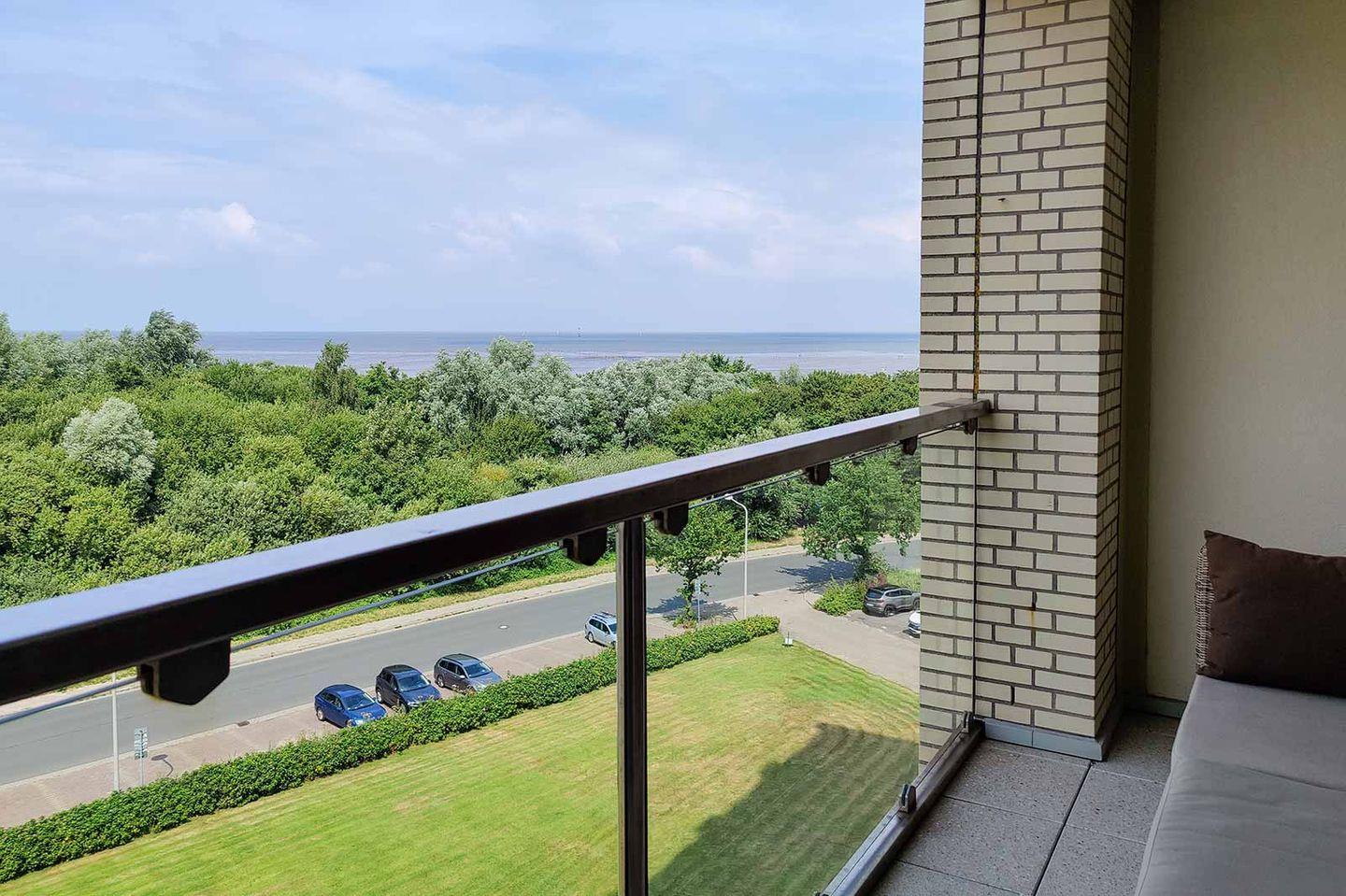 Bis zu 4 Personen können in dieser 2021 teilsanierten 2-Raum-Fewo mit Meerblick ihren Urlaub genießen. Sowohl vom überdachten Balkon als auch vom modern-gemütlichen Essbereich in der 5. Etage schauen Sie auf das Meer und können Ebbe, Flut und den Weltschifffahrtsweg beobachten. Die Strandpromenade ist nur ca. 100 m entfernt und zügig erreicht.
