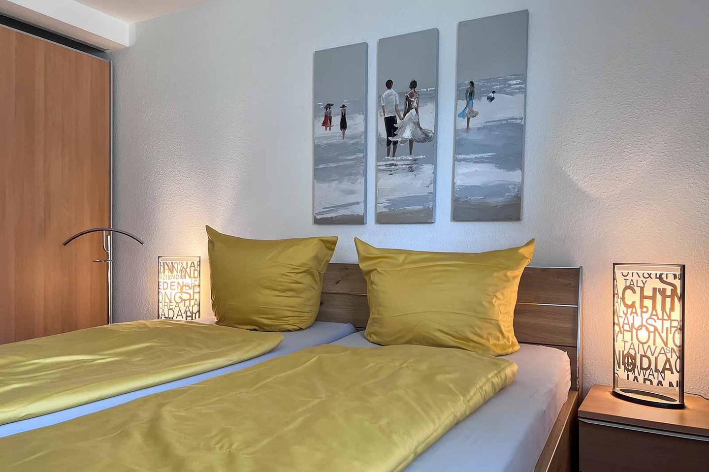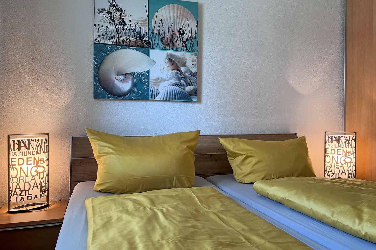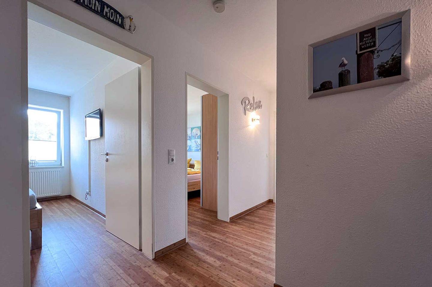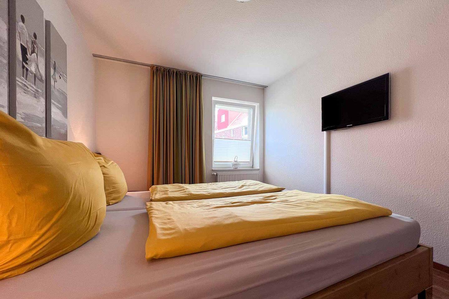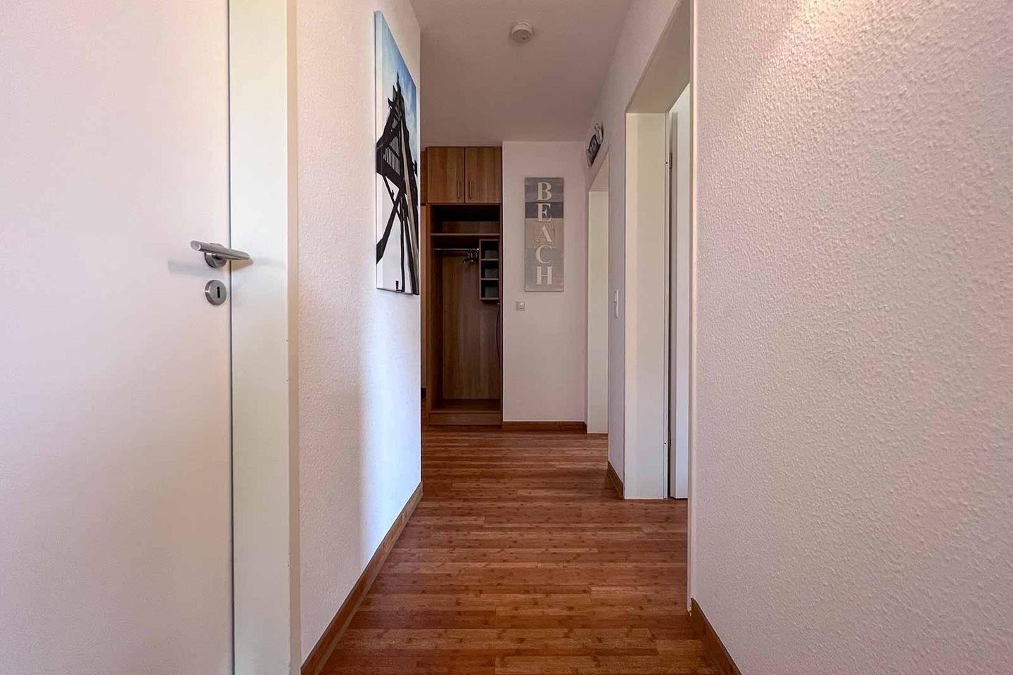 Beide Schlafzimmer sind ausgestattet mit Doppelbetten und in einem der beiden Räume steht zudem ein TV-Gerät zur Verfügung. Der Wohnraum, von dem der Balkon abgeht, ist offen zur Küche gestaltet und bildet so den zentralen Punkt der familienfreundlichen Wohnung. Genießen Sie beim Frühstück die Morgensonne auf dem Ost-Balkon. Ein modern und hell gestaltetes Duschbad ergänzt das Raumkonzept.
