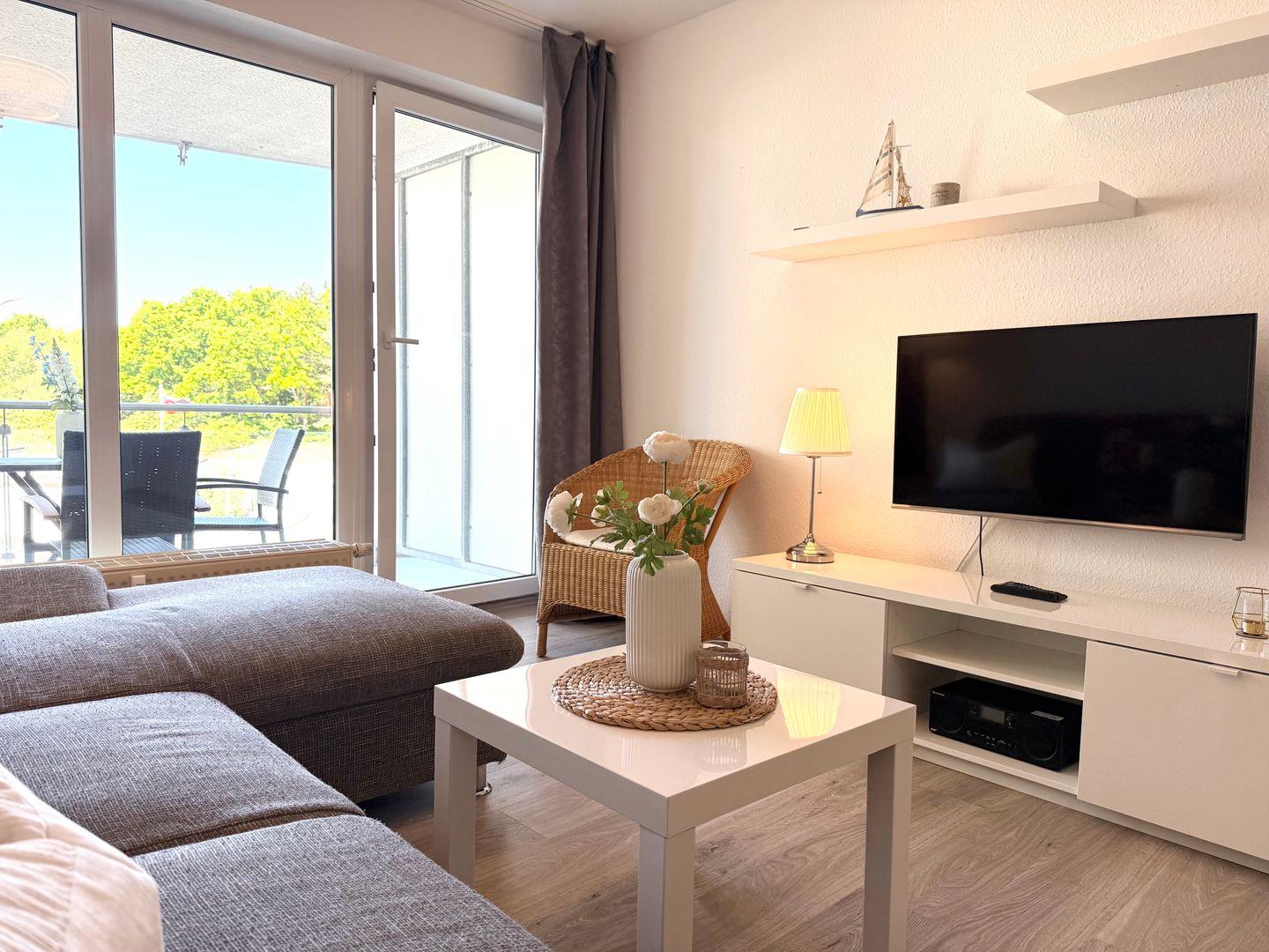 Helle Ferienwohnung mit Meerblick, zwei Balkonen und Strandnähe in Cuxhaven.