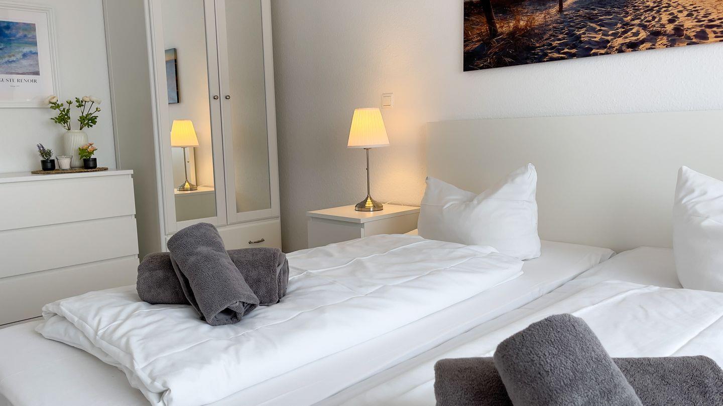 Ruhige Nächte versprechen die zwei Schlafzimmer, eines mit Doppelbett, das andere mit zwei Einzelbetten. Das gemütliche Schlafsofa im Wohnbereich bietet zwei zusätzliche Schlafplätze.