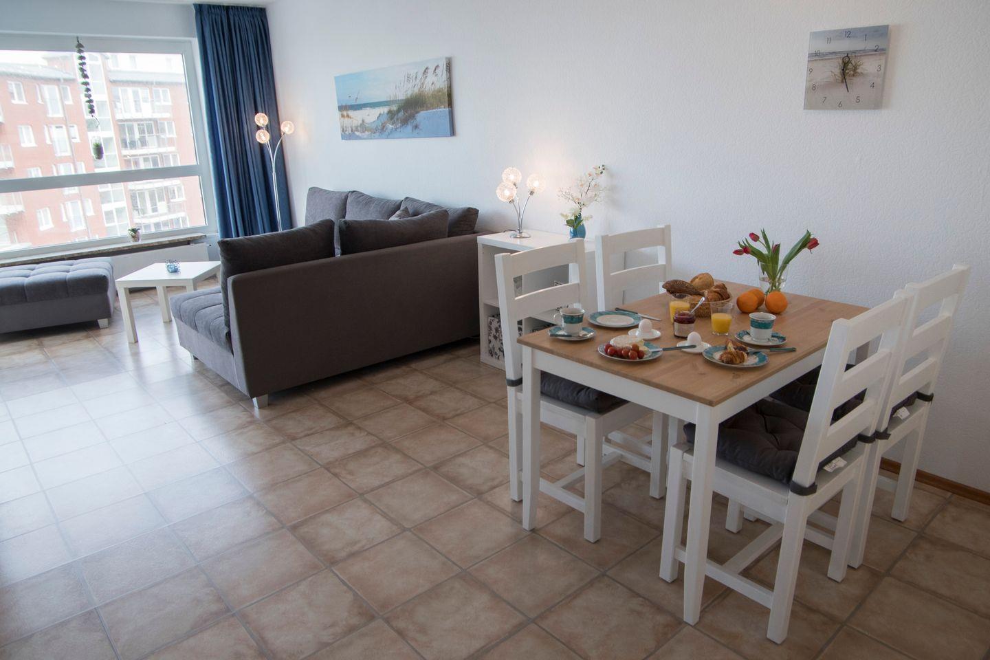 Willkommen in der Frischen Brise FeWo 06.11 in Cuxhaven! Diese moderne Ferienwohnung im 6. Stock bietet auf 43 m² Platz für bis zu 4 Personen. Genießen Sie den außergewöhnlichen Meerblick von Ihrem überdachten Balkon. Die offene Küche ist ausgestattet mit einem Herd, Mikrowelle, Geschirr und Besteck, ideal für gemeinsame Mahlzeiten. Zu den Annehmlichkeiten zählen WLAN, ein TV und eine gemeinsame Nutzung von Waschmaschine und Trockner. Entspannen Sie im Innenpool oder erkunden Sie die Umgebung beim Joggen, Wandern und Windsurfen. Familien sind herzlich willkommen!