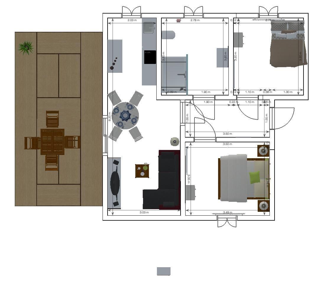 Sie verfügt über 2 separate Schlafzimmer und ein Wohnzimmer mit Schlafcouch. Die Wohnung ist mit hellen, freundlichen Möbeln eingerichtet.
