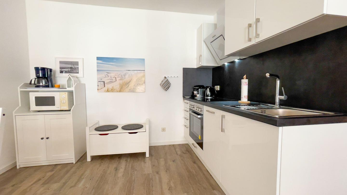 Die strandnahe 37?m² große Ferienwohnung im 1. OG bietet ein separates Schlafzimmer, Duschbad sowie einen Wohn-/Essbereich mit Schlafsofa und offener Küche. Maximal 4 Personen finden hier Platz. Strand und Promenade sind fußläufig erreichbar.