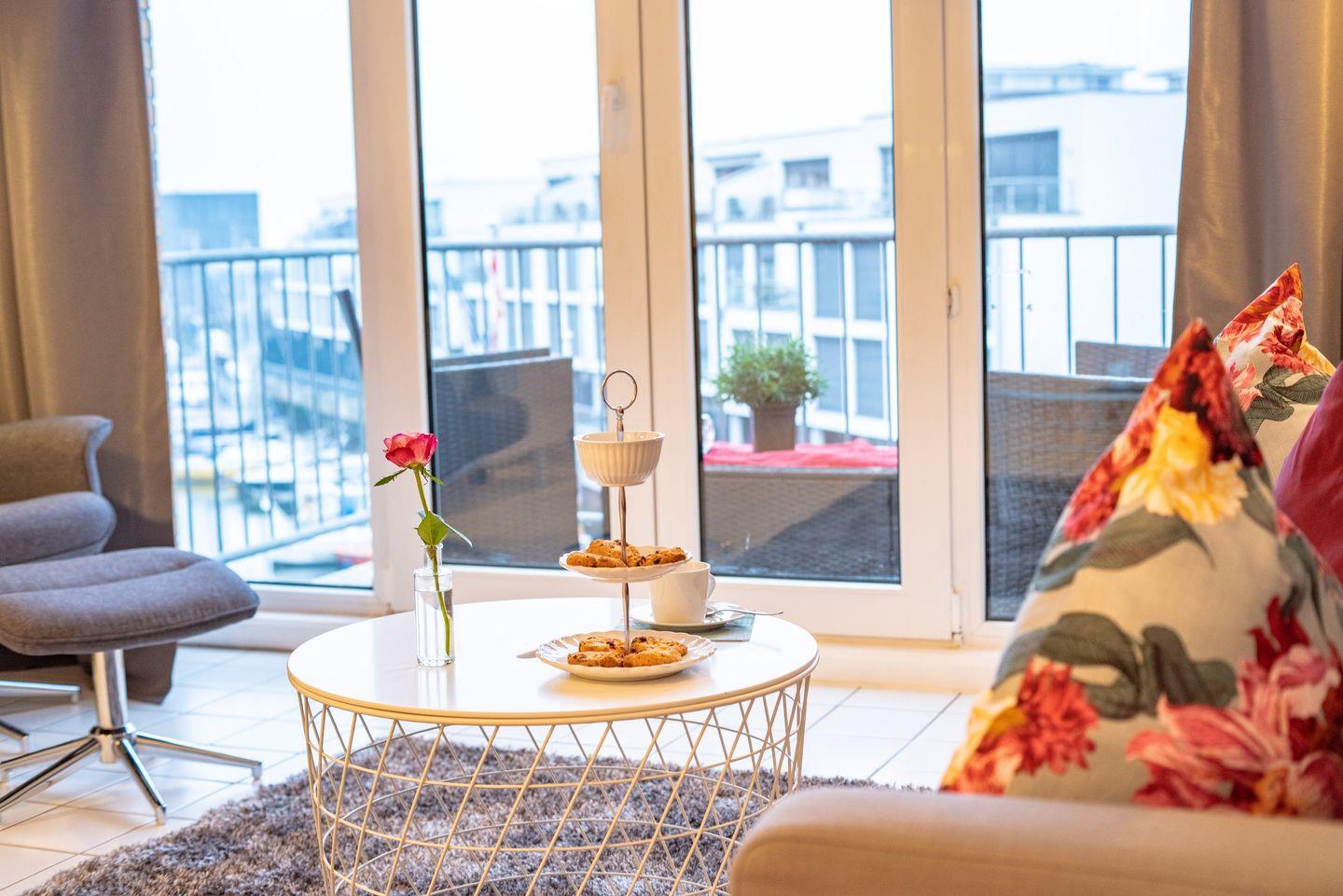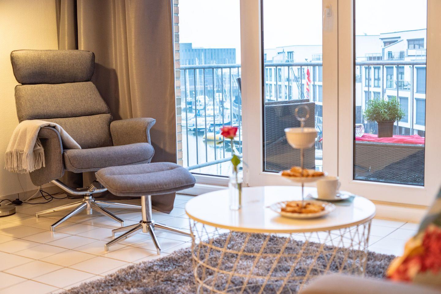 Modernes Apartment mit zwei Balkonen und Blick auf den Cuxhavener Yachthafen.