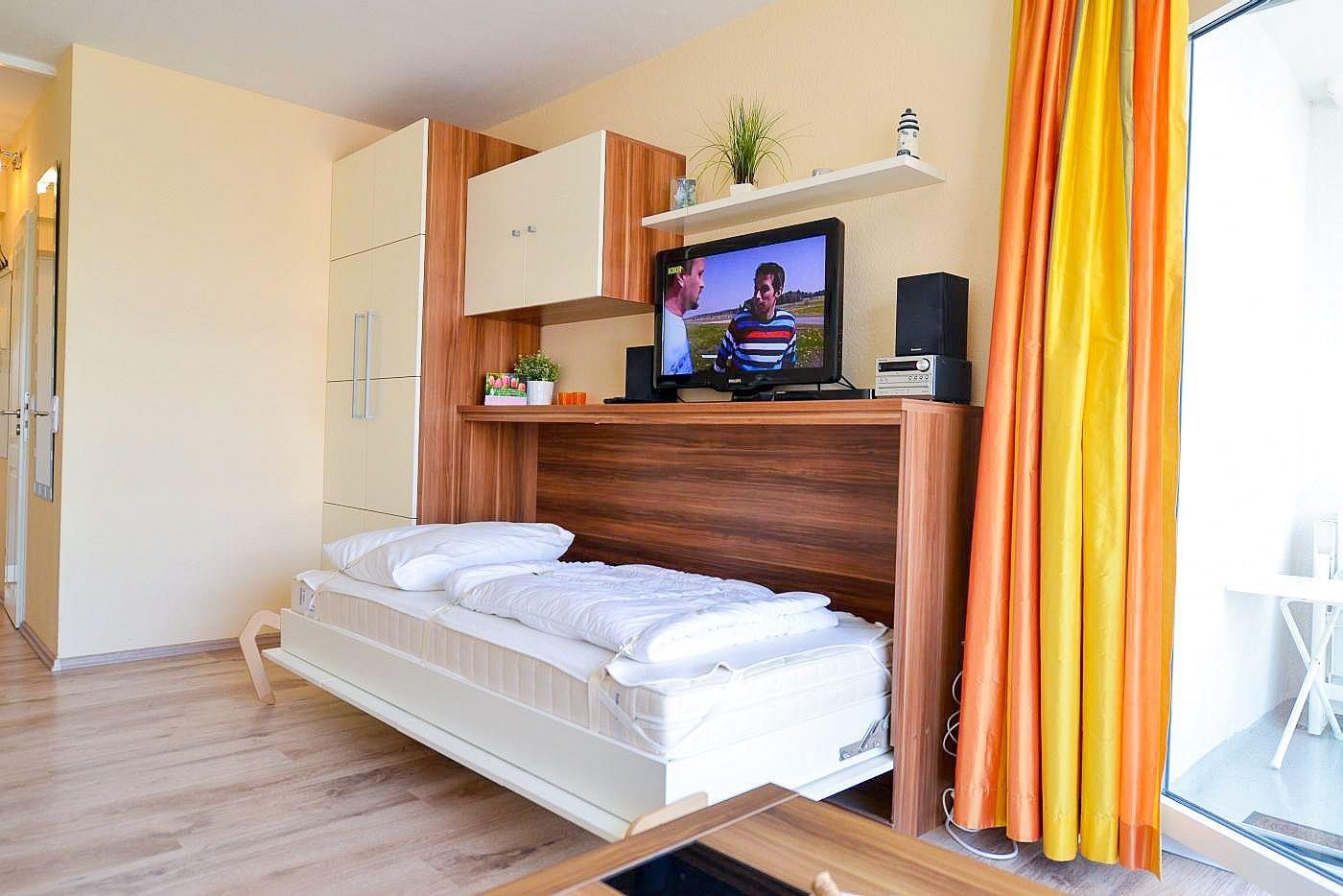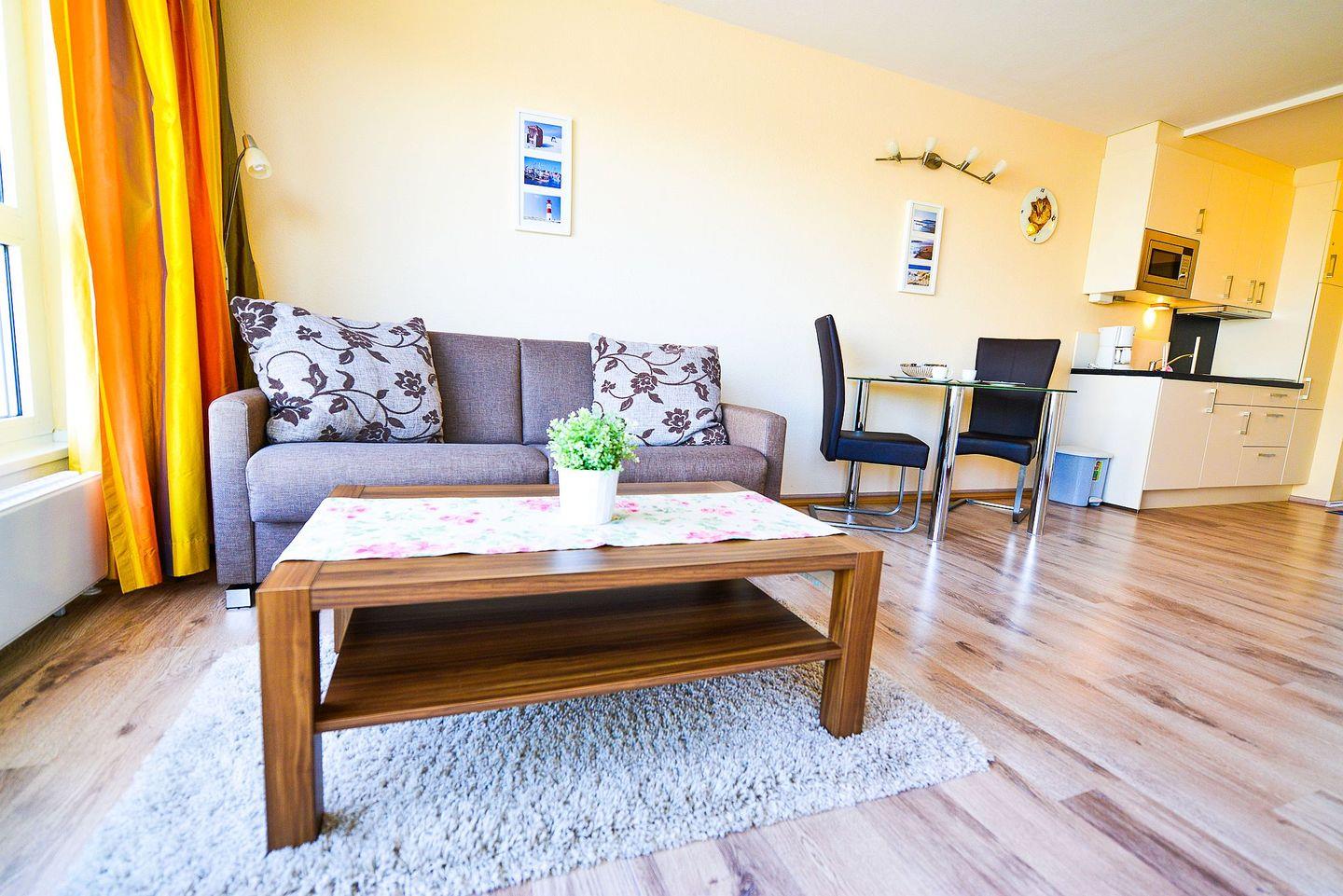 Von der vollausgestatteten Küchenzeile, über den hellen Wohn- und Schlafraum mit Flatscreen TV + kostenfreiem Wlan und bis hin zum Duschbad ist dieses gemütliche Appartement auf Wohlfühlen an der Nordsee zugeschnitten.