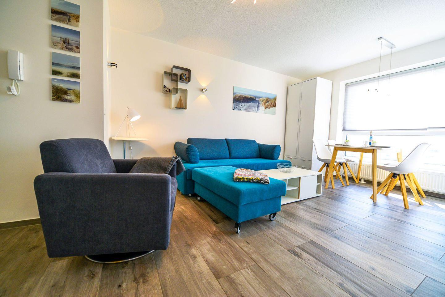 Auf rund 42 m² empfängt diese hochwertig ausgestattete und neu möblierte Ferienwohnung bis zu drei Personen zu einem entspannten Nordseeurlaub. Die Unterkunft bietet einen angenehmen Mix aus modernem Komfort, klarer Raumaufteilung und maritimer Atmosphäre – ideal für Erholung zu jeder Jahreszeit.