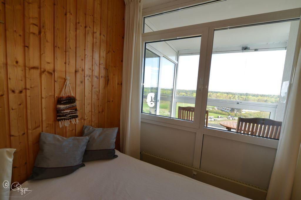 Moderne Ferienwohnung in Cuxhaven mit verglastem Südbalkon und seitlichem Seeblick, nur 150 Meter vom Strand entfernt.