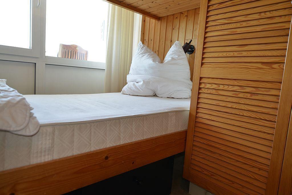 Nach dem Strandbesuch lassen sich schöne Stunden auf dem verglasen Südbalkon mit seitlicher Seesicht verbringen, der sich komplett öffnen lässt.