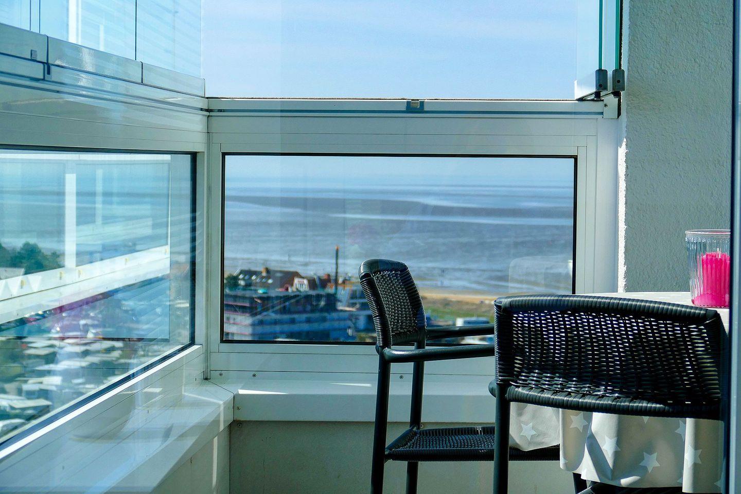 Moderne Ferienwohnung in Cuxhaven mit Seeblick, Balkon und Strandnähe für entspannte Urlaubstage.