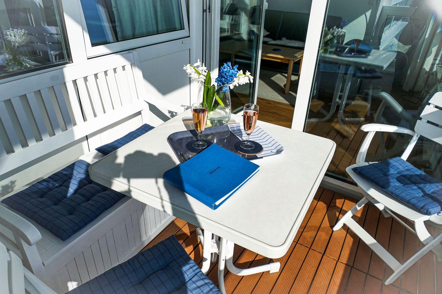 Nur 150 Meter liegen zwischen Ihnen und langen Strandspaziergängen und für die Zeit nach langen Strandtagen bietet sich der überdachte Südbalkon mit seitlichem Meerblick dazu an, den Abend an der Meeresluft ausklingen zu lassen.
