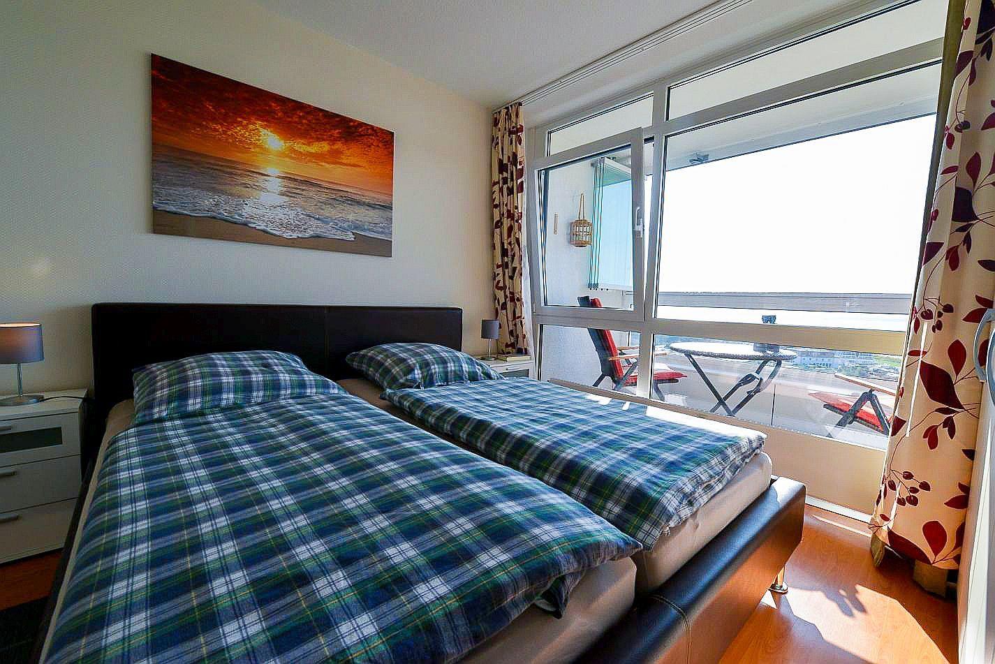 Für die Zeit nach langen Strandtagen bietet sich der überdachte und verglaste Westbalkon, der sich komplett öffnen lässt, dazu an, den Abend an der Meeresluft ausklingen zu lassen und die Panoramseesicht vom 14. Stock aus zu genießen.