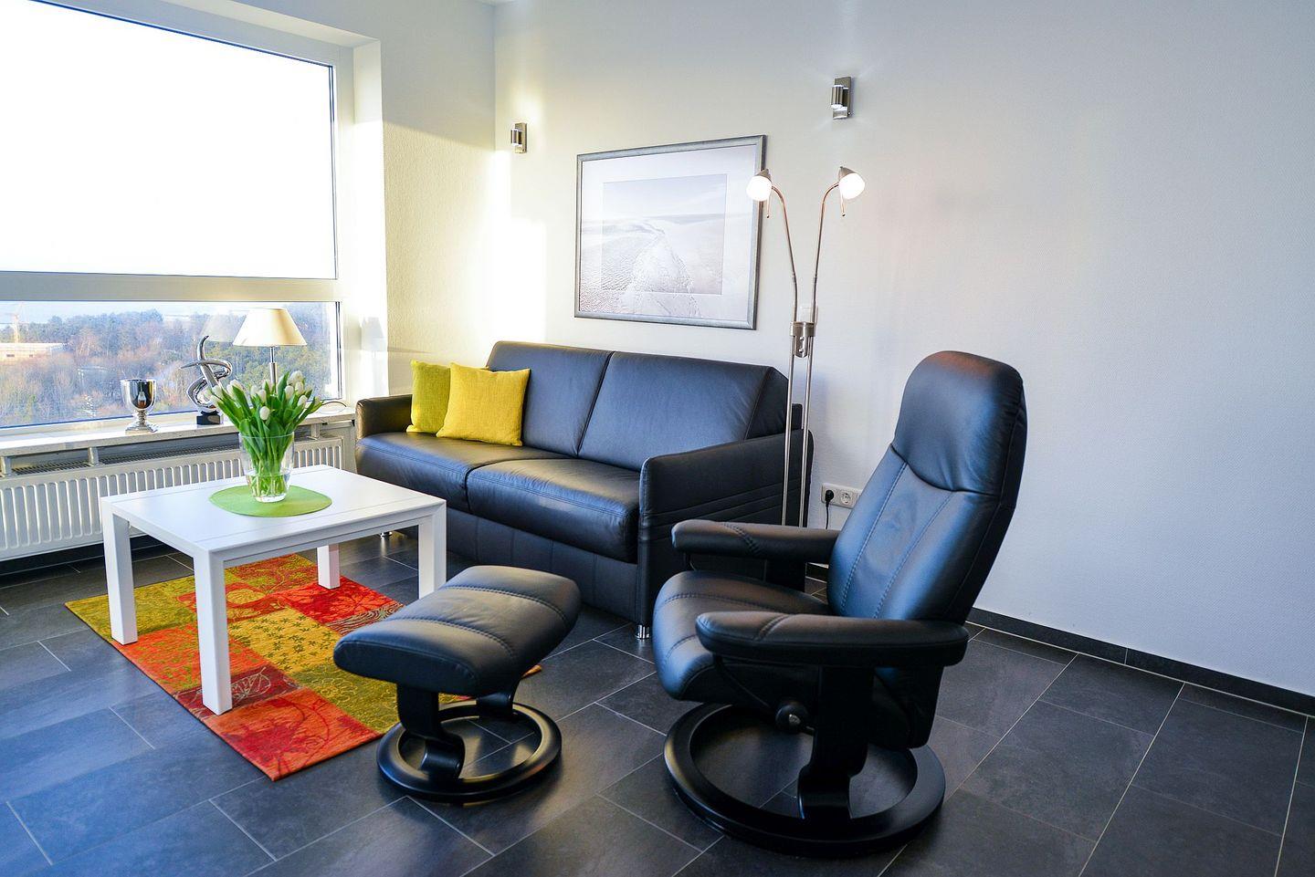 Moderne Ferienwohnung in Cuxhaven mit Panoramablick auf die Nordsee und Strandnähe.