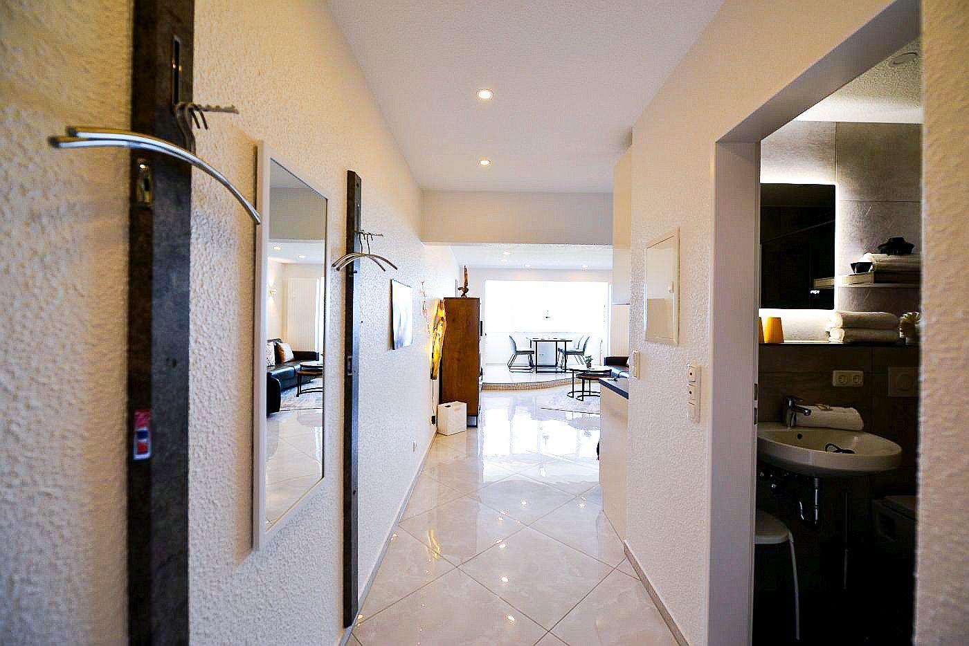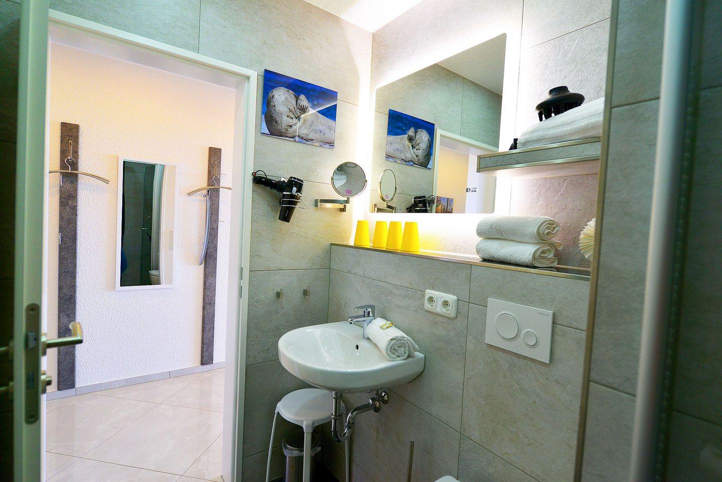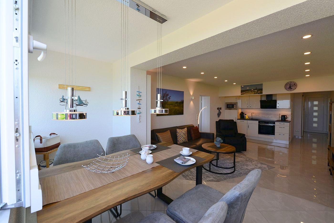 Beginnen Sie Ihren Urlaubstag mit einer erholsamen und energiespendenden Dusche in dem schönen Bad, genießen Sie ein köstliches Frühstück am Esstisch vor der verglasten Fensterfront zum Öffnen mit Panoramameerblick und verbringen Sie anschließend einen wunderbaren Tag am Strand. So oder so ähnlich könnte der Beginn eines typischen Urlaubstags in dieser Traumferienwohnung verlaufen.