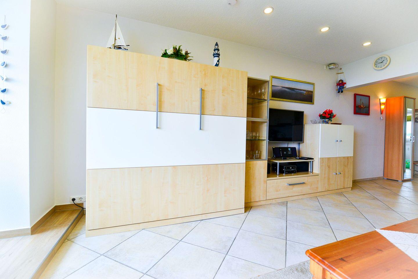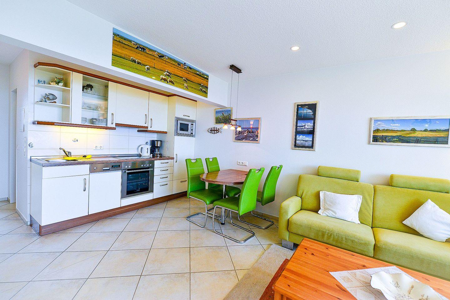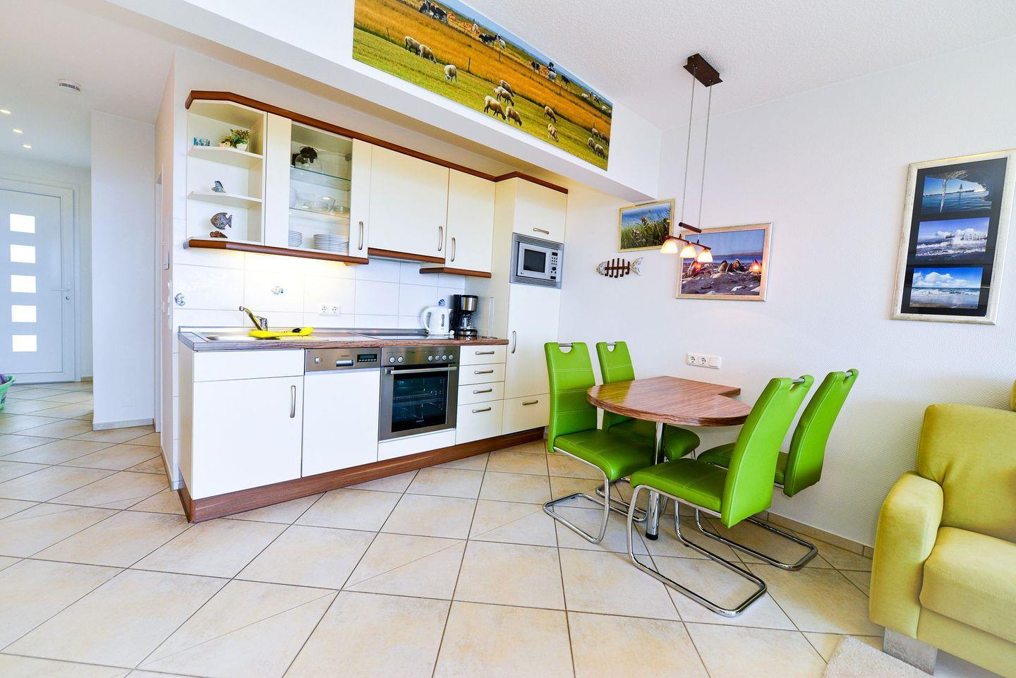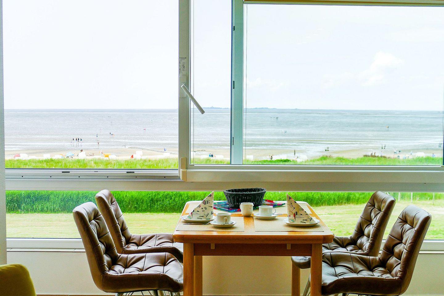 Das angenehme Wohlgefühl der Ferienwohnung wird durch die vollwertige Einrichtung unterstrichen. So ist von der vollausgestatteten Küchenzeile bis zum Fernseher und dem kostenlosen WLAN alles gegeben, was man benötigt, um sich ganz dem Urlaub zu widmen. Die große verglaste Fensterfront, die sich komplett öffnen lässt, sorgt dafür, dass Sie stets von bester Meeresluft umgeben sind und bietet Ihnen einen erstklassigen Panoramablick aufs Meer und die Insel Neuwerk.